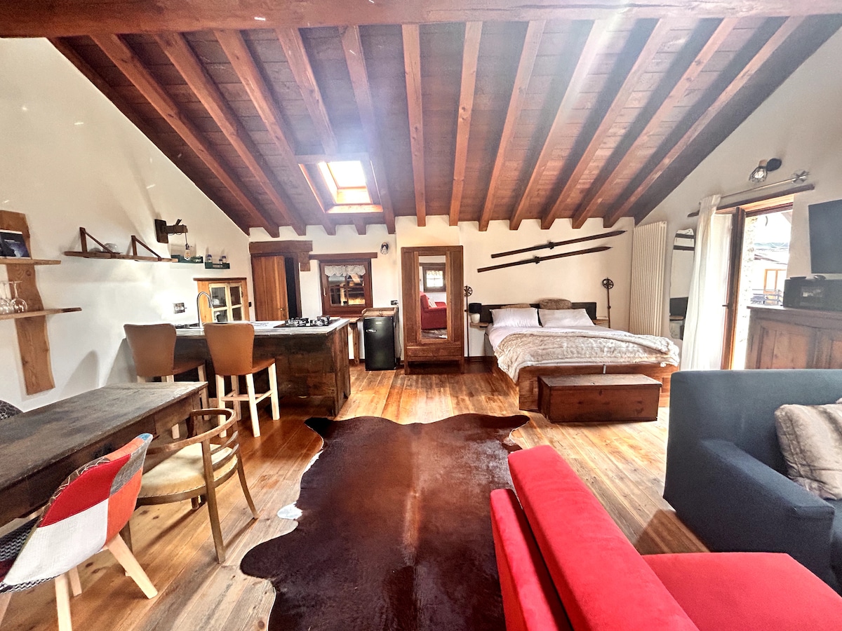 “La Casa dell’Arco” prende il nome dall’arco di ingresso, elemento tipico dell’architettura di Frassinetto, che caratterizza questa abitazione storica. Il suo nucleo più antico risale presumibilmente al XIII – XIV secolo. L’unità è composta da tre ambienti curati nel dettaglio per riscoprire la calda atmosfera delle case alpine. L’ambiente soggiorno con un divano/letto e camino precede la cucina ed a completare una splendida camera dotata di doccia e un bagno confortevole e attrezzato.