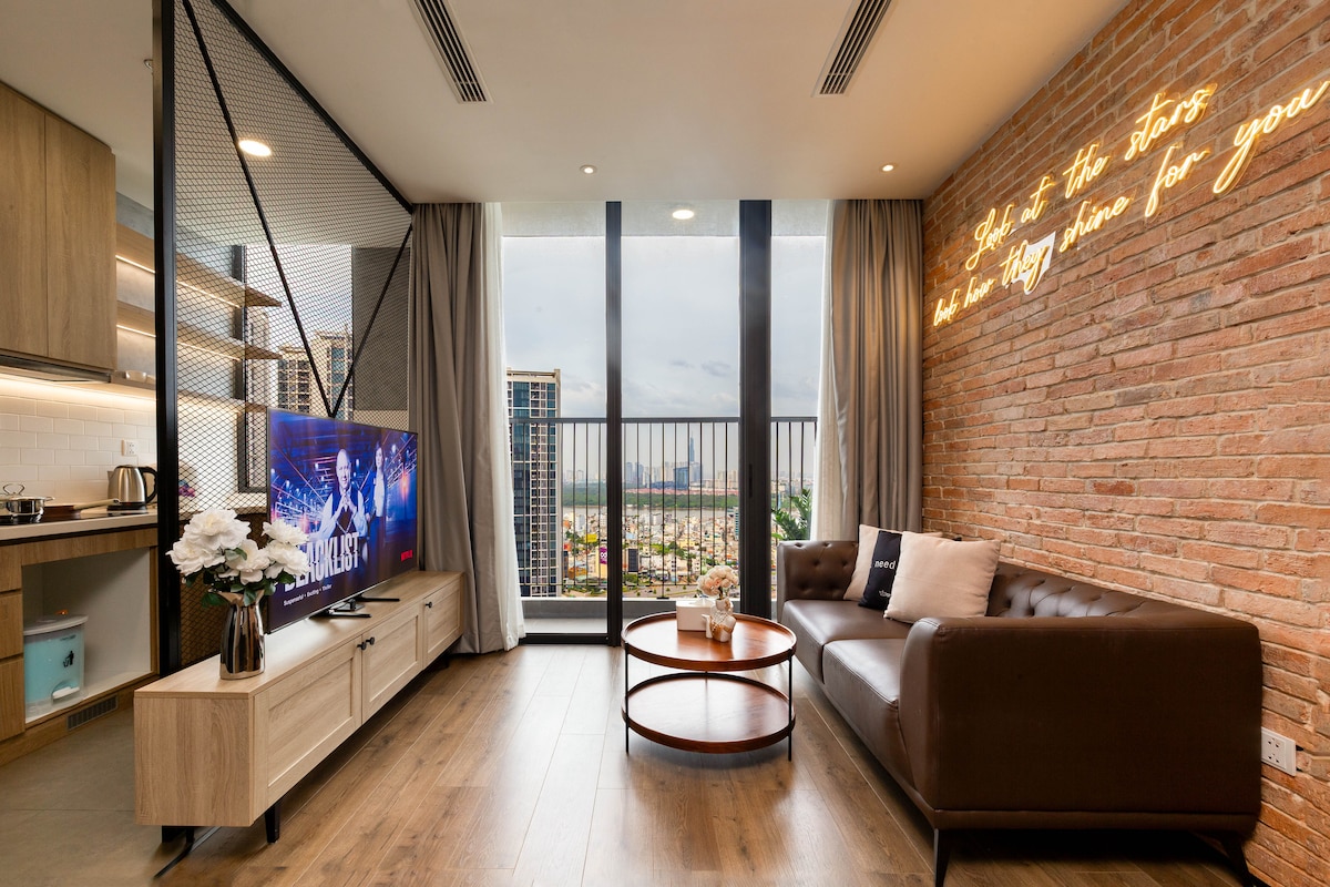 Observe and feel the city itself. The best view including 2 iconic buildings of Saigon (Bitexco Tower & Landmark 81). - Panoramic view of the city - Catch mutiples firework spots and Sunsets - Piano Included, 75 inch TV for movies and sport - Fully functional kitchen with Nam An Market bellow, perfect for groups or couples cooking nights. - Great working place by day and night - Access to swimming pool (G Floor) and gym (2nd F) - 5 mins to District 1 (City Center) - 5 mins to Thao Dien Area