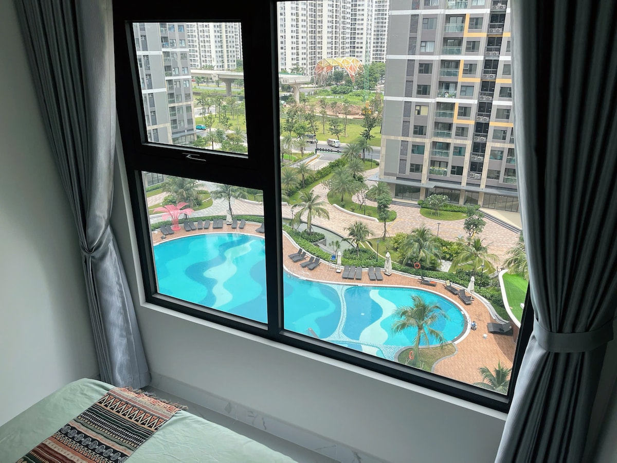Vinhomes Grand Park" is a place built surrounded by trees and lakes When you rent, you will have free use of services such as: tennis court, basketball, badminton, football, table tennis, BBQ, Japanese garden park, bus... the area has Markets, coffee, food, health care, shopping malls, schools, pharmacies.. and environmentally friendly utilities, - Free swimming pool only applies to guests renting for 2 weeks or more - The GYM is near the building and is available for a fee - Paid golf course