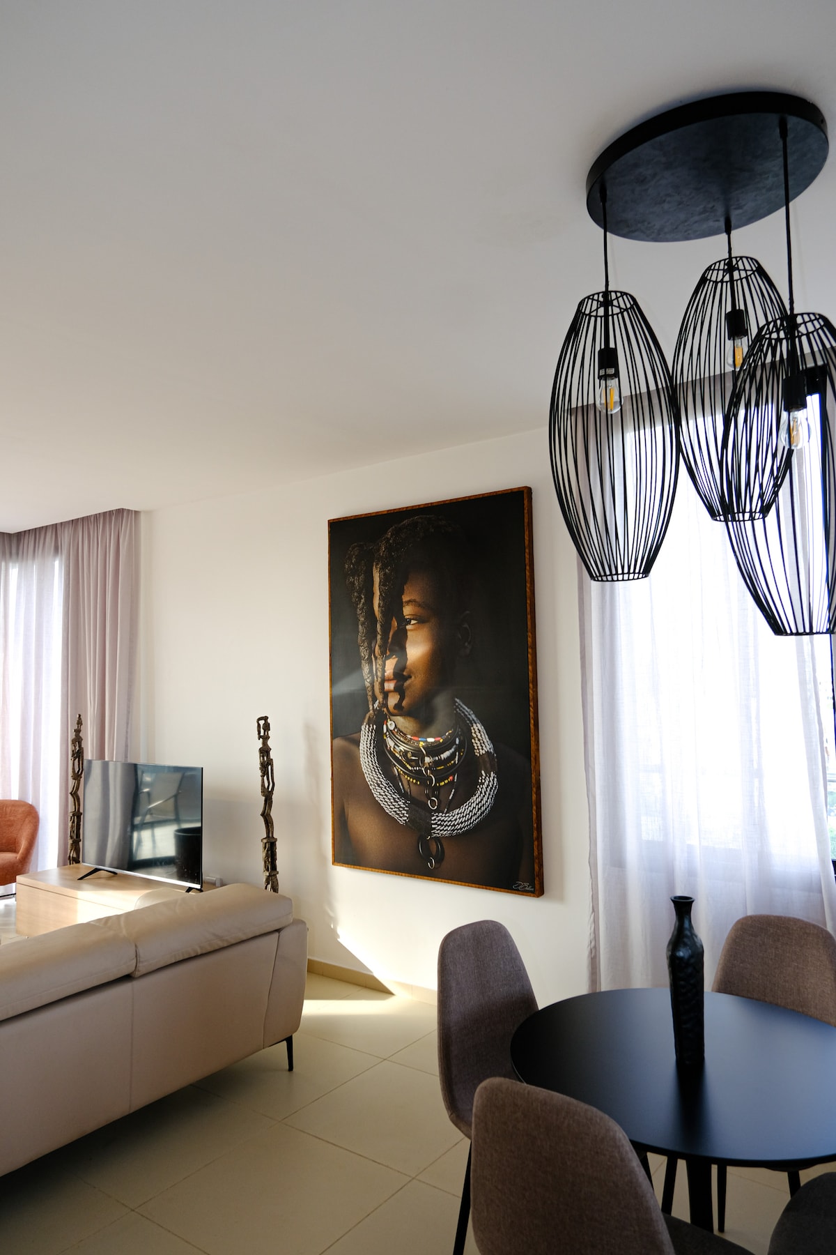 ★ ”..Alains Apartm. is well situated, he is a care taking..” Hortense ☞ 43” SMARTTV with Android ☞ 50MBs Wi-Fi ☞ 7/7 Guard ☞ central location ☞ modern afric. Design ☞ Access to Pool ☞ Near the business district «le Plateau» ☞ Near the beach ☞ easy transportation ☞ surrounded by Intern. Restaurants and Malls » 1 Min drive to Casino (Supermarket 24H, 7/7) » 1 min drive to the Mall Cap Sud » 5 Min Drive to Carrefour Supermarkt (24H,7/7) » only 6 Km from the Airport
