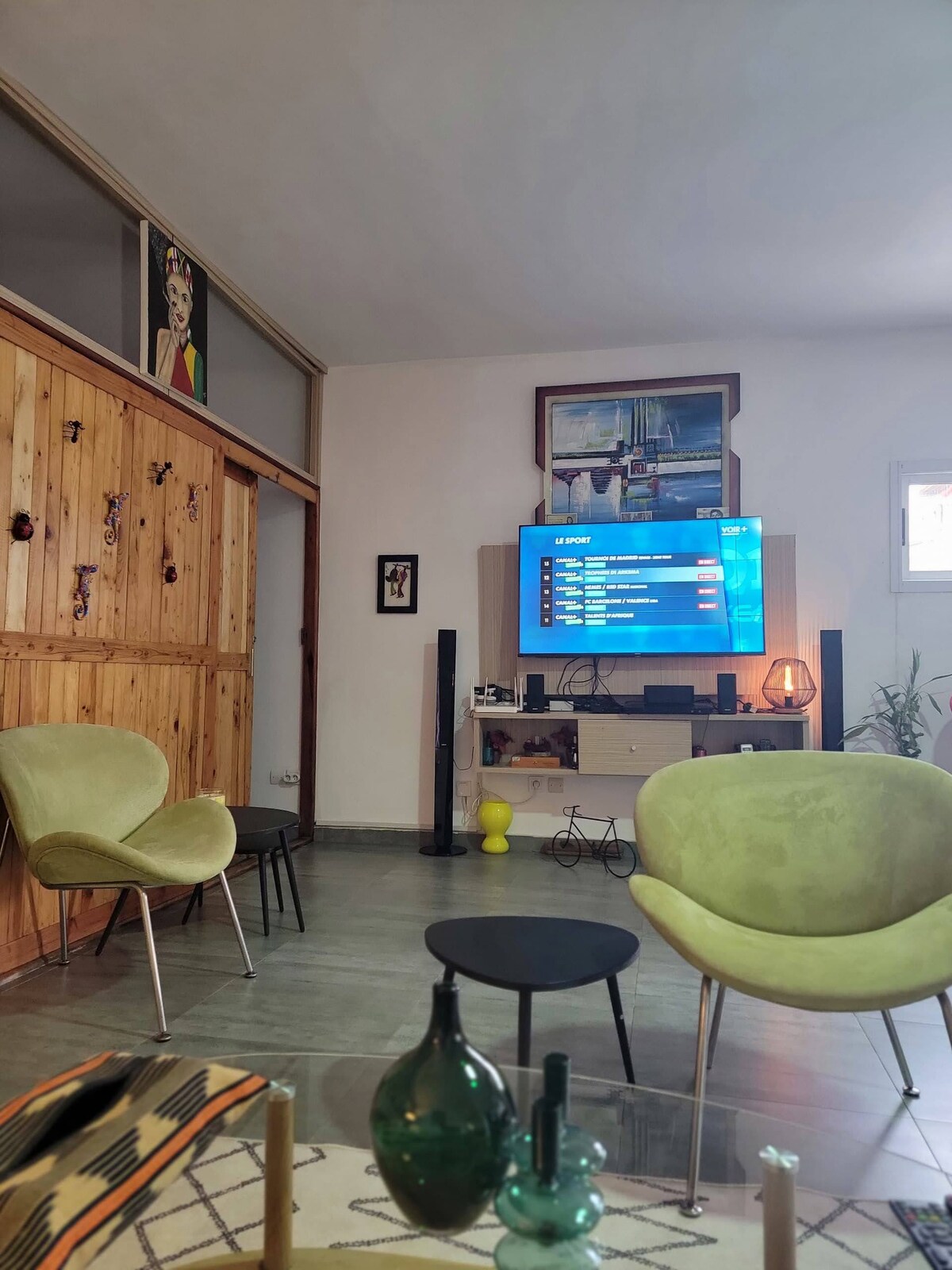 ★ ”..Alains Apartm. is well situated, he is a care taking..” Hortense ☞ 43” SMARTTV with Android ☞ 50MBs Wi-Fi ☞ 7/7 Guard ☞ central location ☞ modern afric. Design ☞ Access to Pool ☞ Near the business district «le Plateau» ☞ Near the beach ☞ easy transportation ☞ surrounded by Intern. Restaurants and Malls » 1 Min drive to Casino (Supermarket 24H, 7/7) » 1 min drive to the Mall Cap Sud » 5 Min Drive to Carrefour Supermarkt (24H,7/7) » only 6 Km from the Airport