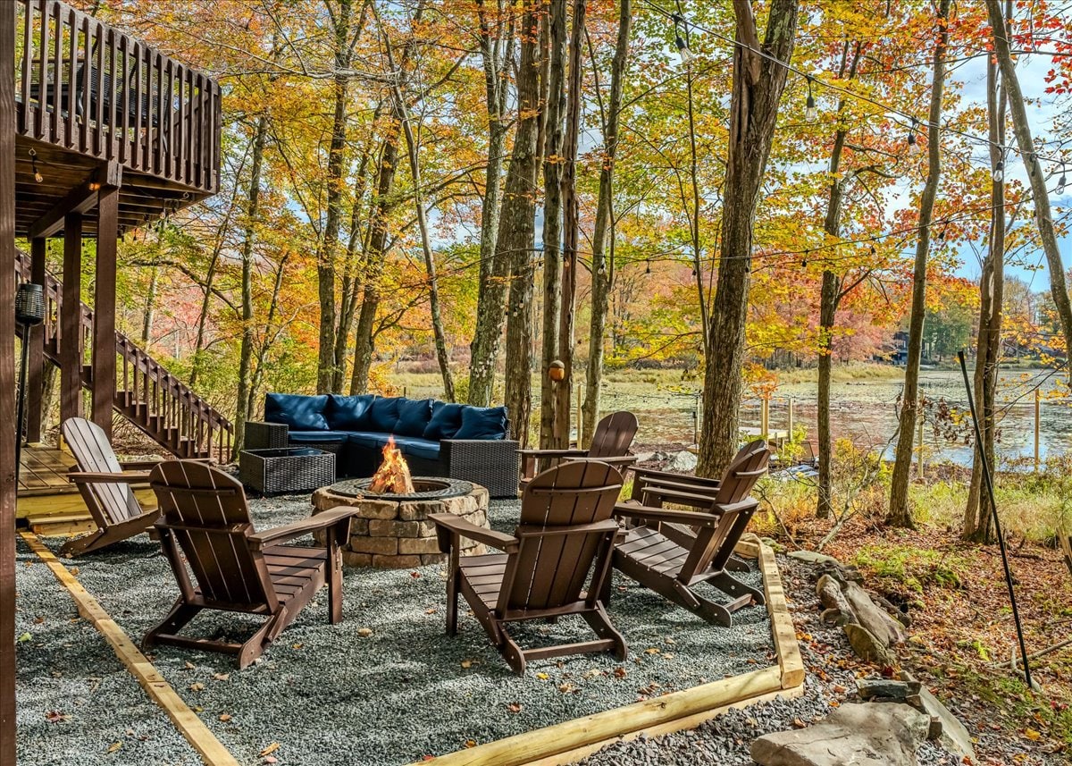 Latitude Adjustment is a unique retreat in Pocono Lake, designed for those who seek the perfect blend of relaxation and local exploration. Equipped with an amazing 4person outdoor steam sauna, a private 7person hot tub featuring waterfall, Bluetooth speakers, and LED lights, huge game room with 65” TV, wood burning stove, large outdoor entertaining area with a grill, fire pit, guest shed and dining area. Located in a beautiful, amenity-rich Arrowhead Lake community, 1 minute walk to the lake!