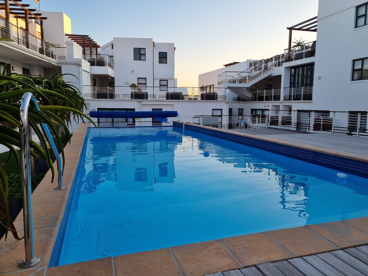 Sunset Splendor is a modern and lovely apartment nestled in a secure gated estate, just a stroll away from the untouched Big Bay beach. With its promise of unobstructed views of Table Mountain, Big Bay, and Robben Island, this tranquil one-bedroom apartment offers an ideal space for a calm getaway. Guests are invited to explore the estate's amenities, including a swimming pool, tennis courts, putt-putt, and a communal barbecue area, or venture out to the city center, which is only 30km away.