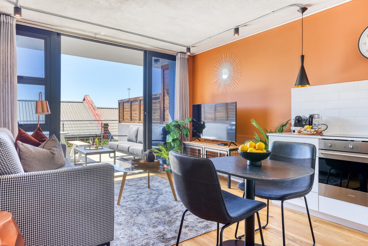 Breathe in the fresh ocean air from this chic getaway. The residence features an open concept main space, a monochromatic interior, a stripped-down design aesthetic, and sliding glass doors leading onto the terrace. Enjoy the beautiful views of the ocean and Table Mountain. Smart tv where you can log into your Netflix account. WiFi 2 parking bays and storage. Closed combustion fireplace with panoramic window and thermo fan quickly heats the entire apartment to a cosy home. We have a nutribullet for your healthy morning smoothies on the terrace. Walking distance to the beach Large private balcony with bbq facilities. We have two underground parking bays as well as a garage for kite boarders to store their gear. Open plan kitchen and living area. Separate bathroom and bedroom. The living area and bedroom both open up onto the spacious balcony. The apartment is located within walking distance of the beach, and close proximity of the best restaurants, cafes, shops Cape Town has to offer.