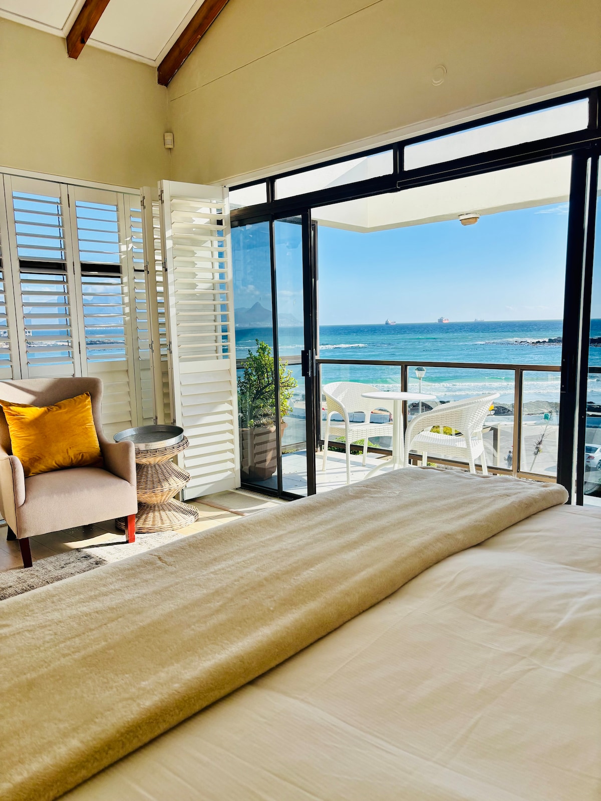 Note: all furniture, appliances and electronics are brand new; state-of-the art alarm and music system. DAILY HOUSEKEEPER: five days a week. Additional hours upon request. Please refer to house manual for exact duties & times. Master Bedroom Upstairs: KING BED with top-of-the line mattress and fine linen & newly renovated ensuite bathroom with double basin. A/C, TV with Cable & Netflix. Expansive, ocean view balcony. 2nd Bedroom Upstairs: KING BED with top-of-the line mattress and fine linen. A/C. Ocean view balcony. 3rd Bedroom Upstairs: Two single beds with top-of-the line mattress and fine linen; can be made up into a King bed. A/C. Newly renovated upstairs Bathroom for bedrooms 2 + 3. Sleeper Couch upstairs: Sleeps 1x adult in open area between bedrooms (not private). Full set of linen provided. Main floor: Gorgeous indoor-outdoor living space, with fully retractable doors for maximum living and entertaining and breathtaking view of the ocean and Clifton Beach. Sliding doors open to beautiful, expansive terrace with private pool, top-of-the range gas barbeque, bar fridge, outdoor shower & designer loungers and comfortable sitting area. Spacious open-plan kitchen & scullery and brand new top-of-the range appliances including Jura coffee machine, wine fridge, washer, dryer, dishwasher etc. Lounge, with ocean views features large 65 inch TV with local cable (DSTV), Netflix & new, centrally controlled indoor and outdoor music system. Main floor also features: • new indoor installed gas fireplace • newly renovated guest bathroom on the main floor • dedicated, quiet work station area SECURITY: State of the art alarm system with remote control and multiple sets of master keys Cameras cover external entire house, including perimeter of the property for maximum security FOR THE MOMS: •Child Sitters, Personal Tour guide/ driver & Private Chef recommendations. High speed Wifi, Dstv (cable) & electricity all inclusive of price. Guests can access the entire home. (aside from owners private, locked storeroom behind the scullery). PLEASE NOTE: The home is situated on Clifton Steps which is a flight of steps from the road - either up to Kloof Road or down to Victoria Road (Victoria Rd accesses the beach.) No private parking. You will have to climb steps. As a designated SUPERHOST I am here to help as needed. I give my guests the privacy they require but am available via WatsApp or text message. If you need me, I am just a message or phone call away! The home is in Clifton, an exclusive residential suburb of Cape Town that showcases 4 immaculate beaches. The V&A Waterfront is a great day out for shopping, visiting the Two Oceans Aquarium, and taking Robben Island boat trips. If you are getting around - there is a very reliable bus transport system called MyCiTi. It’s safe & reliable. Also open-top Sightseeing buses are a great way to see the City and surrounds. But mostly visitors and locals use Uber - its quick, fast & cheap. The 2nd & 3rd Bedrooms don't have TV's. PLEASE NOTE: The home is situated on Clifton Steps street which is a flight of steps from the road, up or down, to the home depending on which way you arrive from. So you will have to climb steps. There is no private parking.