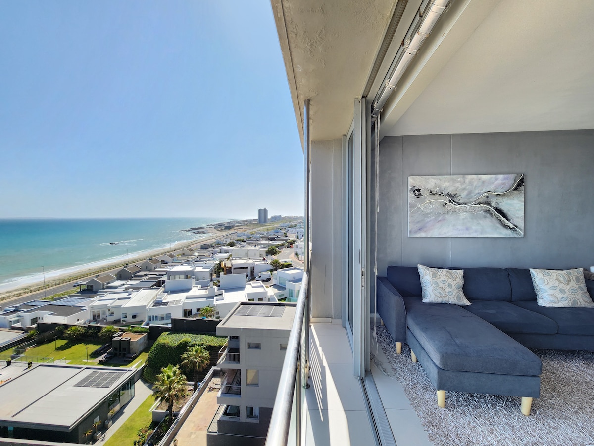 LOADSHEDDING FREE! This modern, airy 2-bedroom/2 Bathroom family apt. with stunning sea-views from the bedroom and lounge balconies, is ideally located in a secure apartment block. 100m from the beach with spectacular views of Table Mountain, Signal Hill and Robben Island. A stone's throw away from Doodles Strip & Restaurant, Blue Peter, Klein Baai, Big Bay, shops and a 30 minute drive to various attractions including wine farms, V&A Waterfront and Table Mountain. A Kite-surfer’s DREAM!