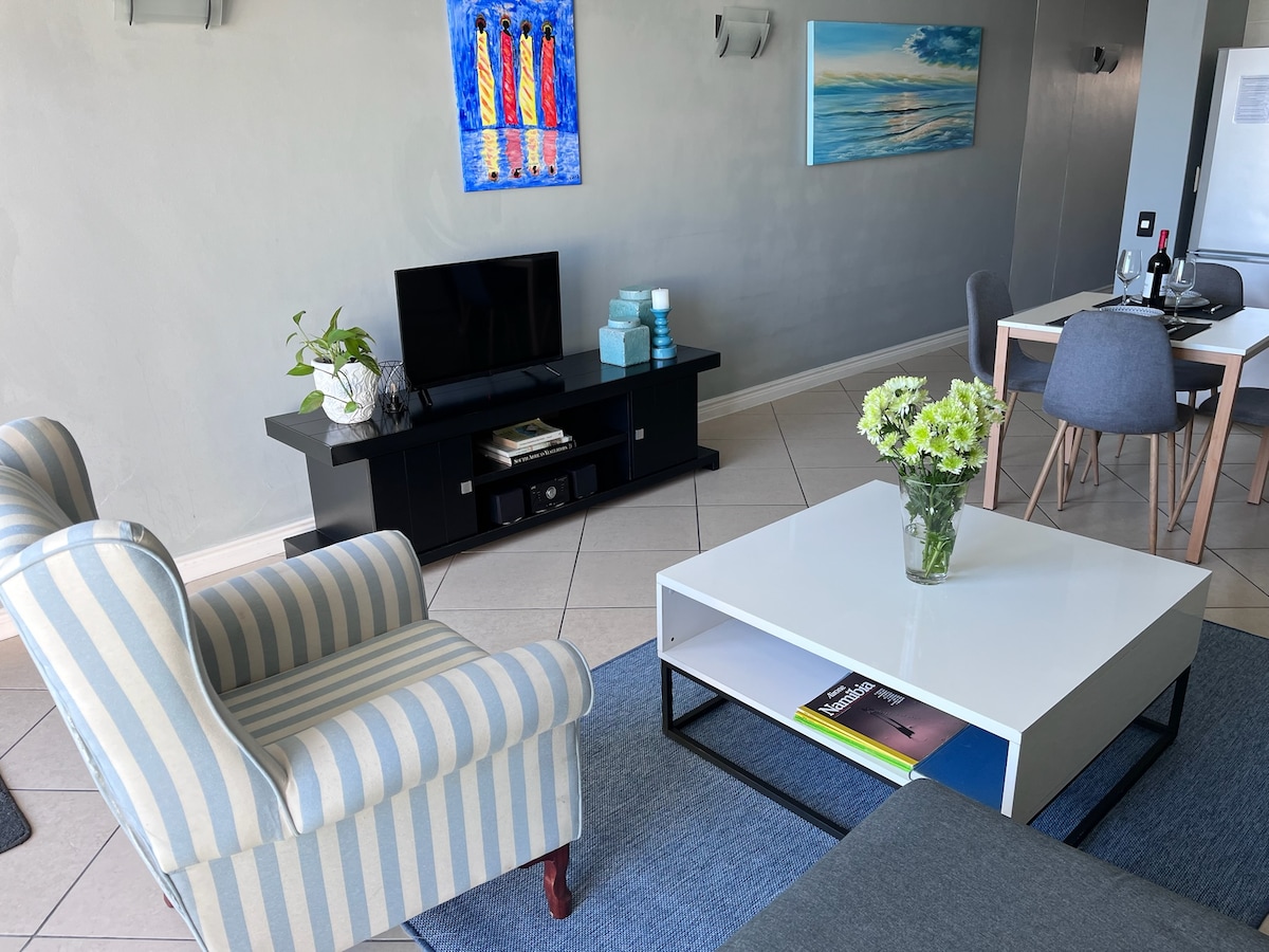 Relaxation is the perfect way to describe this bright and sunny Apartment in the heart of Cape Town's most famous windsurfing, kitesurfing hot spots with views of the majestic Table Mountain where you can enjoy the tranquillity of the sound of waves. It offers a spacious and luxurious feel, with 2 bedrooms, 2 en-suite bathrooms and stylish kitchen that has all the features for a pleasurable self-catering stay. A shopping centre, restaurants, Cafes and laundromat within walking distance.