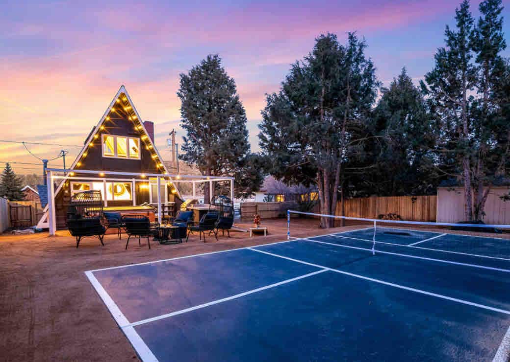 Just 5 mins to Golf ⛳+ Zoo. Quiet hiking trail down the street & backyard Enjoy a dreamy retreat with a spectacular ski slope view❄️in an authentic tongue-and-groove modified-A-frame style log cabin. Sip cocoa on the front deck while enjoying the ski view (or spying on the skiers w/ our binoculars). Watch the sunset behind the trees 🌄and listen to the whispering pines around you. Soak in the private hot tub on the back porch under the starry sky. Relax in the massage chair after a long hike!