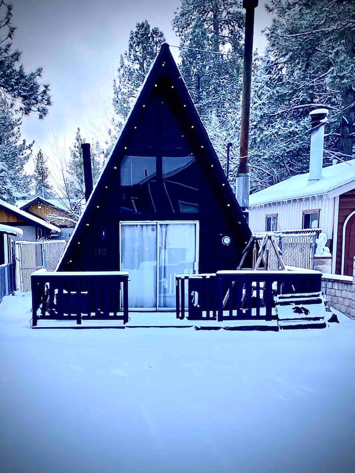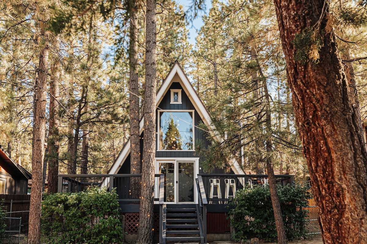 This perfect little Aframe cabin backs the forest! Hiking, biking & the view is what you'll have direct access to at this mountain retreat. Located on a quiet street near Bear Mt. Ski Resort,tucked into the trees, you'll find this mid-century modern cabin.If you are looking for a romantic hide-away,a double couple adventure or a place for your besties to re-connect & unwind, this truly is the coolest cabin in Big Bear Lake.Highly sought after cabin, it will book up fast!Not for children under 6.