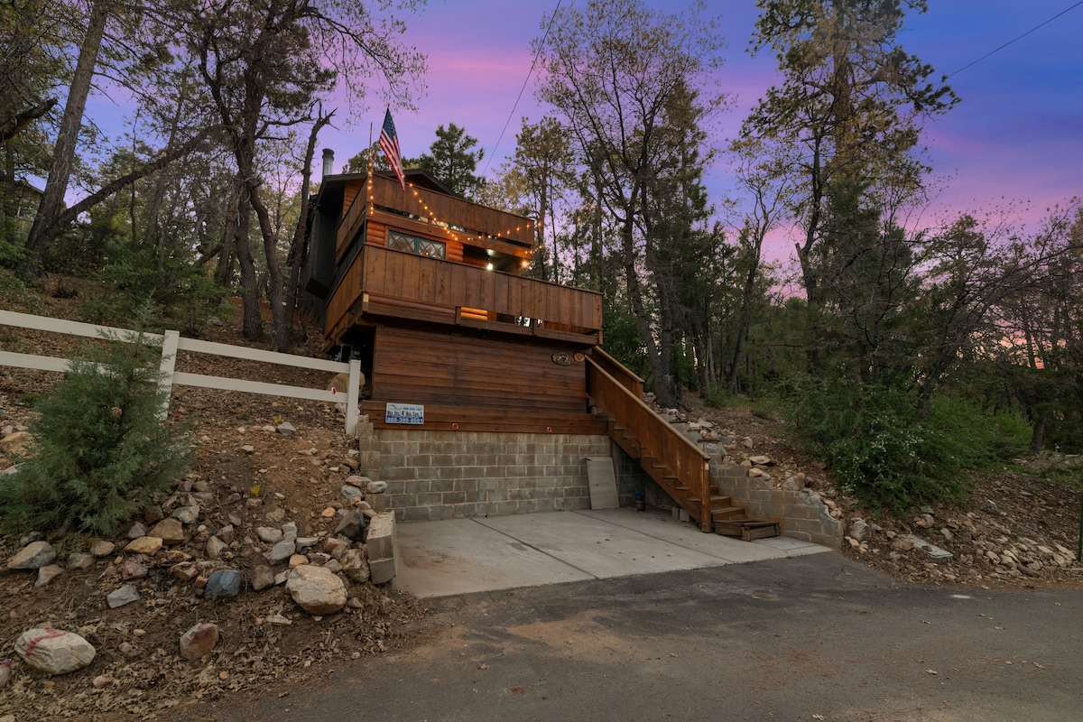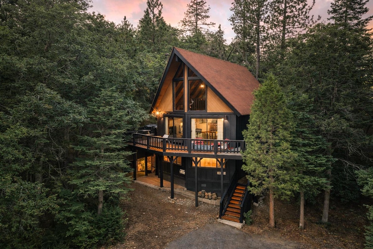Welcome to Quiet Pine Cabin! Take your Big Bear escape to the next level with this cute Gambrel style cabin, nestled on the edge of the National Forest with direct access to trails and a short drive to the village & lifts. Enjoy the upgraded modern amenities, without losing the cozy cabin charm. The peaceful back deck (equipped with an outdoor living space, firepit, grill, and jacuzzi), looks into the forest, allowing you to unwind and immerse yourself in nature from birdwatching to stargazing.