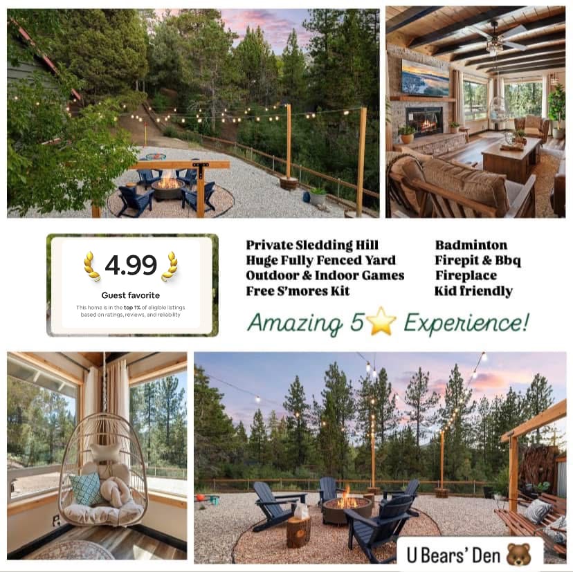 🛁 Private hot tub 🔥 Fireplace+fire pit 🎬 Outdoor movie screen 🐾 Fenced yard (pet 👍🏽) 📚 Loft balcony nook 🛏️ 2BR+loft sleeps 6: queen bed, bunk beds, air mattress 🏔️ THE MOUNTAIN MURDOCK is a remodeled retreat 11 min to slopes & close to Big Bear Lake 🍽️ Open kitchen, indoor fireplace, record player & exposed beams—perfect for couples, families & pets! ⭐️ Guests love: hot tub soaks, fireside chats, movie nights under the stars, sipping coffee in the loft, & vinyl vibes.