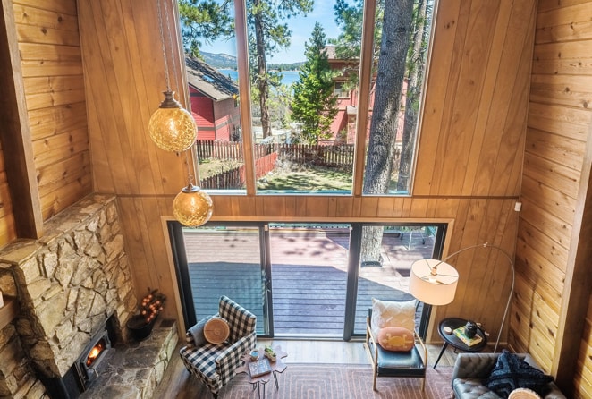 Balsam Bungalow is a Picturesque Mid-century bungalow, nestled on a piney hillside, with state forest and Lake views. Residing in the exclusive & charming Moonridge neighborhood, walk/drive to the Big Bear slopes located .3 miles away. Snow Summit 9 min drive. State Forest Hiking trails 2 blocks away. Snuggle by the masonry fireplace & take in the picturesque view in front of ceiling to floor windows. Enjoy the wooded yard with wrap around deck, fire pit, BBQ, eating area & scenic hot tub.
