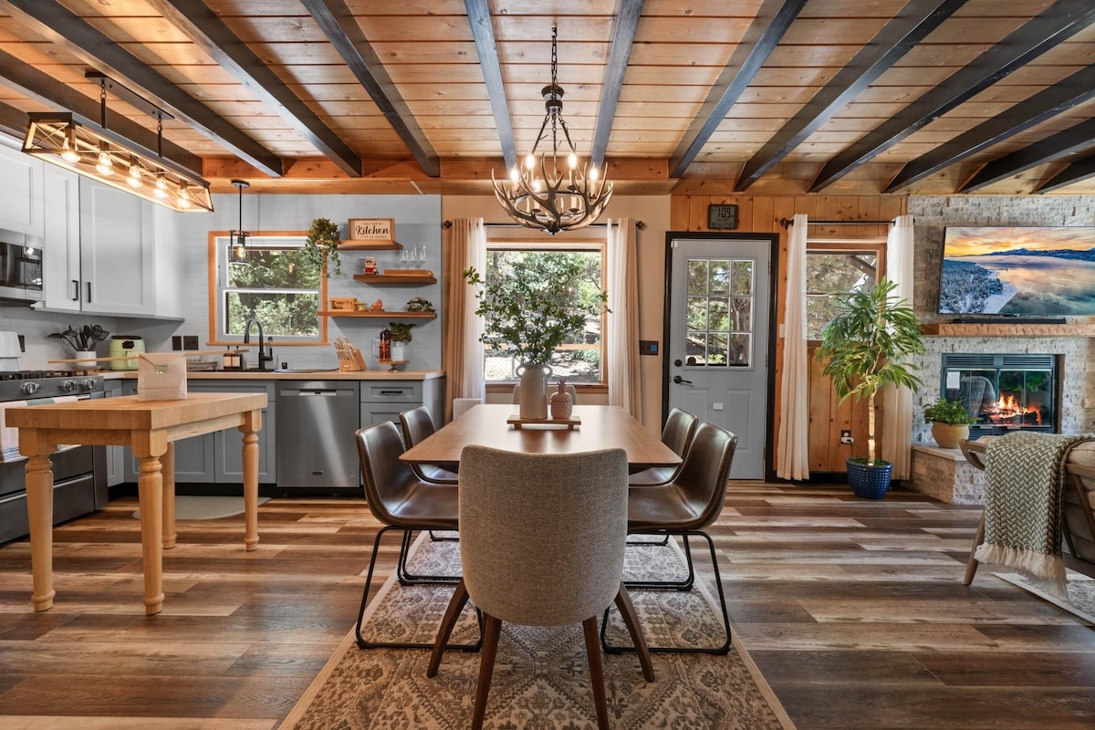 Bear Hugs is an inviting open-concept cabin adorned with Hudson Bay wool blankets, Restoration Hardware, and custom rustic furnishings. A smart and nostalgic retreat, just steps from the lake, a short walk to the village, and minutes drive from the slopes, Bear Hugs has emerged as a beloved gem in Big Bear Lake. Experience the perfect blend of the perks and privacy of a standalone home and spa, combined with the elegance, amenities, and cleanliness of a quaint hotel. BBL License: VRR-2024-2883