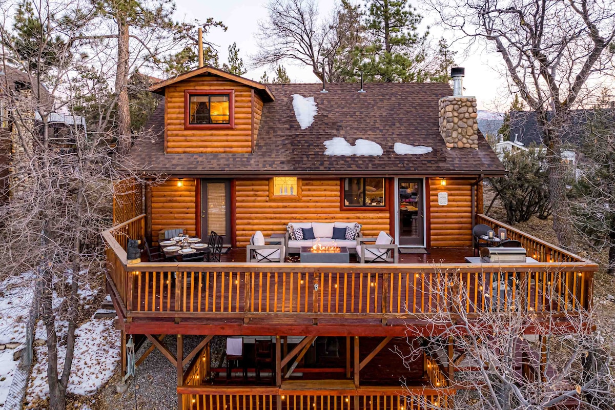 Escape to our mountain cottage in the coveted lower moonridge neighborhood that is a 5 minute walk to the free Big Bear Trolley (Red Line) to Bear Mountain or Snow Summit, running every 30 mins. We provide crisp fresh white towels, a rare luxury in AirBnBs! Revel in the large, secluded deck with fire pit & BBQ. A winter wonderland awaits you with a toasty wood burning fireplace, modern kitchen, and soft comfortable beds to make this the perfect retreat. Book now for an unforgettable getaway!