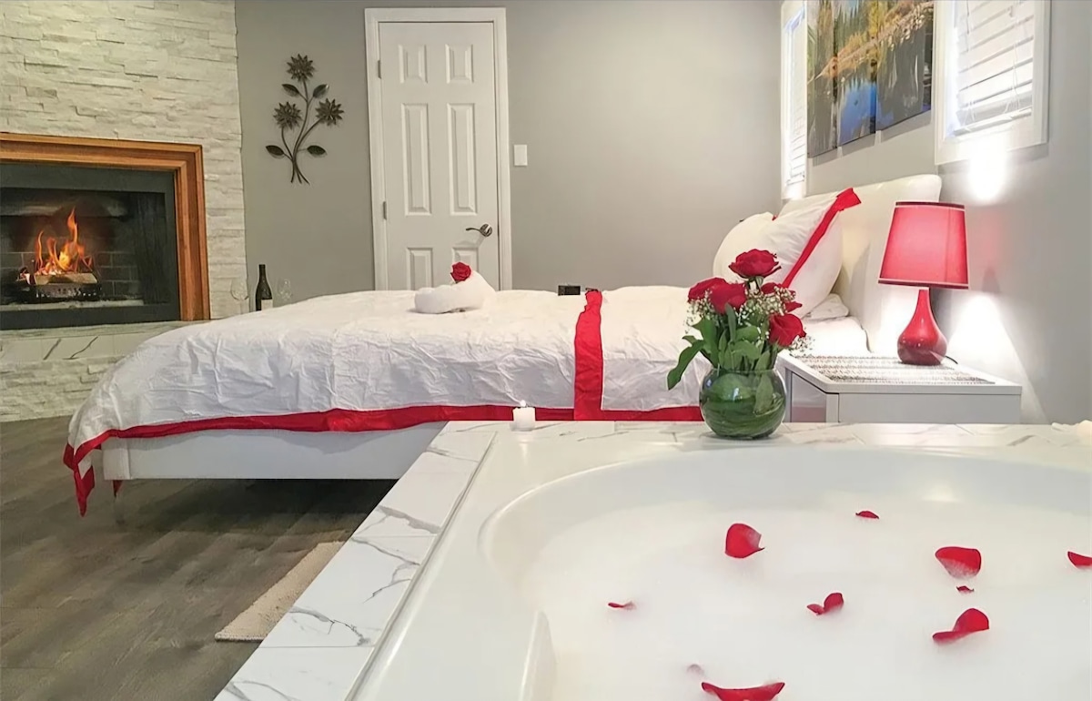 午夜小木屋A型带水疗~壁炉~烧烤
