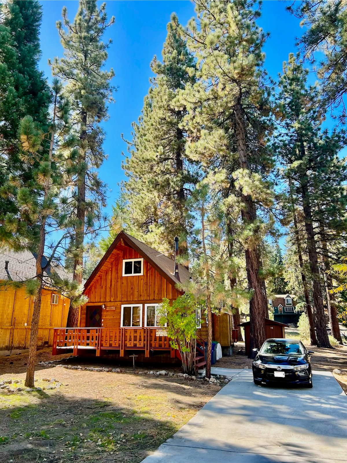 This perfect little Aframe cabin backs the forest! Hiking, biking & the view is what you'll have direct access to at this mountain retreat. Located on a quiet street near Bear Mt. Ski Resort,tucked into the trees, you'll find this mid-century modern cabin.If you are looking for a romantic hide-away,a double couple adventure or a place for your besties to re-connect & unwind, this truly is the coolest cabin in Big Bear Lake.Highly sought after cabin, it will book up fast!Not for children under 6.