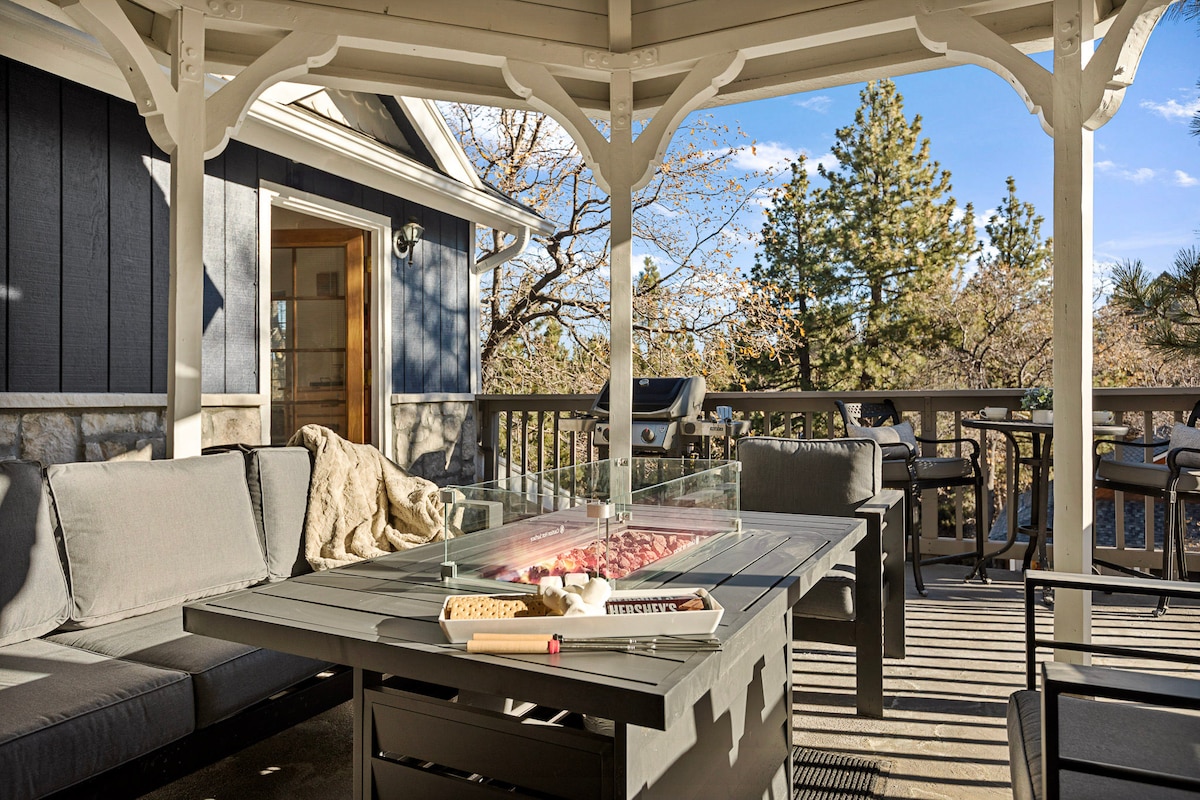 Nestled beneath Big Bear’s towering pines at 7k feet elevation, this luxury 2-bedroom cabin blends rustic charm with modern comfort. Minutes from the lake, village, and ski resorts, it features a private deck, BBQ grill, fast Wi-Fi, and a cozy firepit for starlit nights. Enjoy serene forest views, plush bedding, and a fully equipped kitchen. Perfect for romantic escapes, family adventures, or week-long retreats in every season.
