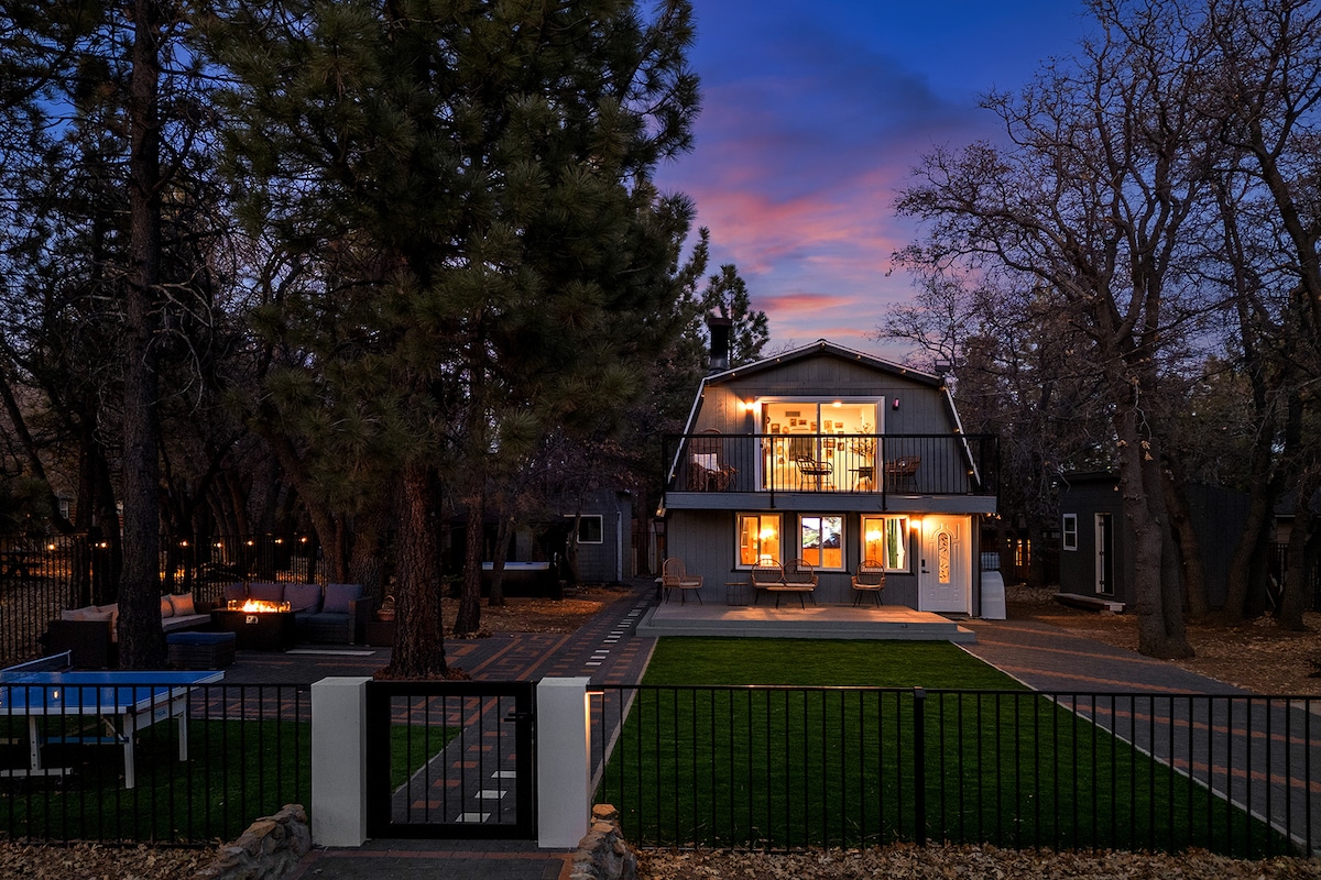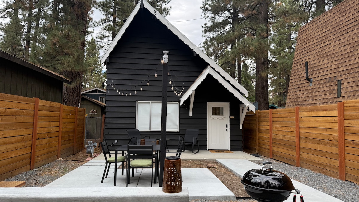 Enjoy the mountains by ski, board, foot, boat or bike. You'll want to come home to this Scandinavian Hideaway by day's end. While relaxing in the hammock, dining on the deck, or nestling by the fire you can retreat and rejuvenate. Unwind as the light of the sun setting paints the two story window wall. The 22 foot ceilings beside the painted wood walls. Nordik Eskape has both adventure and intimacy. See more @Nordik_Eskape WE DO NOT ALLOW PETS. This cabin was renovated by a Swedish Interior Designer and an American Architect. Refrigerator/Freezer, Washer/Dryer, Dishwasher, Gas Stove, Microwave, Keurig Coffee Maker, French Press, Electric Kettle, Toaster, Central Heating (Nest), Pots and Pans, Tableware, Cookbooks and Condiments, Wood Burning Stove, Firewood, Fire Extinguishers, Amazon Fire TV, Amazon Echo, Queen Size Sleeper Sofa, Extra Blankets and Linens, Rocking Chairs, Ice Scraper, Books, Magazine and Games, Queen Size Bed, Down Comforter, Underbed Storage with Extra Pillows and Blankets, Humidifier, Master Patio with Rocking Chair, Bidets, Heated Toilet Seats, Heated Towel Rack (Master), Hair Dryers, Showers with Shampoo, Conditioner and Body Wash. Extra Towels and First Aid Kit (Guest), Wrap Around Patio with 4 Burner Gas BBQ and Grill, Bar Cart and Cooler, Patio Dining Table and Chairs, Patio Umbrella, Arlo Constant Active Monitoring, Master Vault Key Protection, Ash Receptacle, Shed, Trash Bins and 3 Parking Spaces, Sleds, Hammocks, Snow Shovel and Extra Firewood Via phone, email or text. The cabin is four miles from Bear Mountain Resort, with Snow Summit and the Village just a little further. It's only two blocks from the Community Market, a local favorite. Activities include skiing, hiking, climbing, biking, zip-lining, and boating. The mountain does have a shuttle service as well as access to Uber, Lyft and other taxi arrangements.