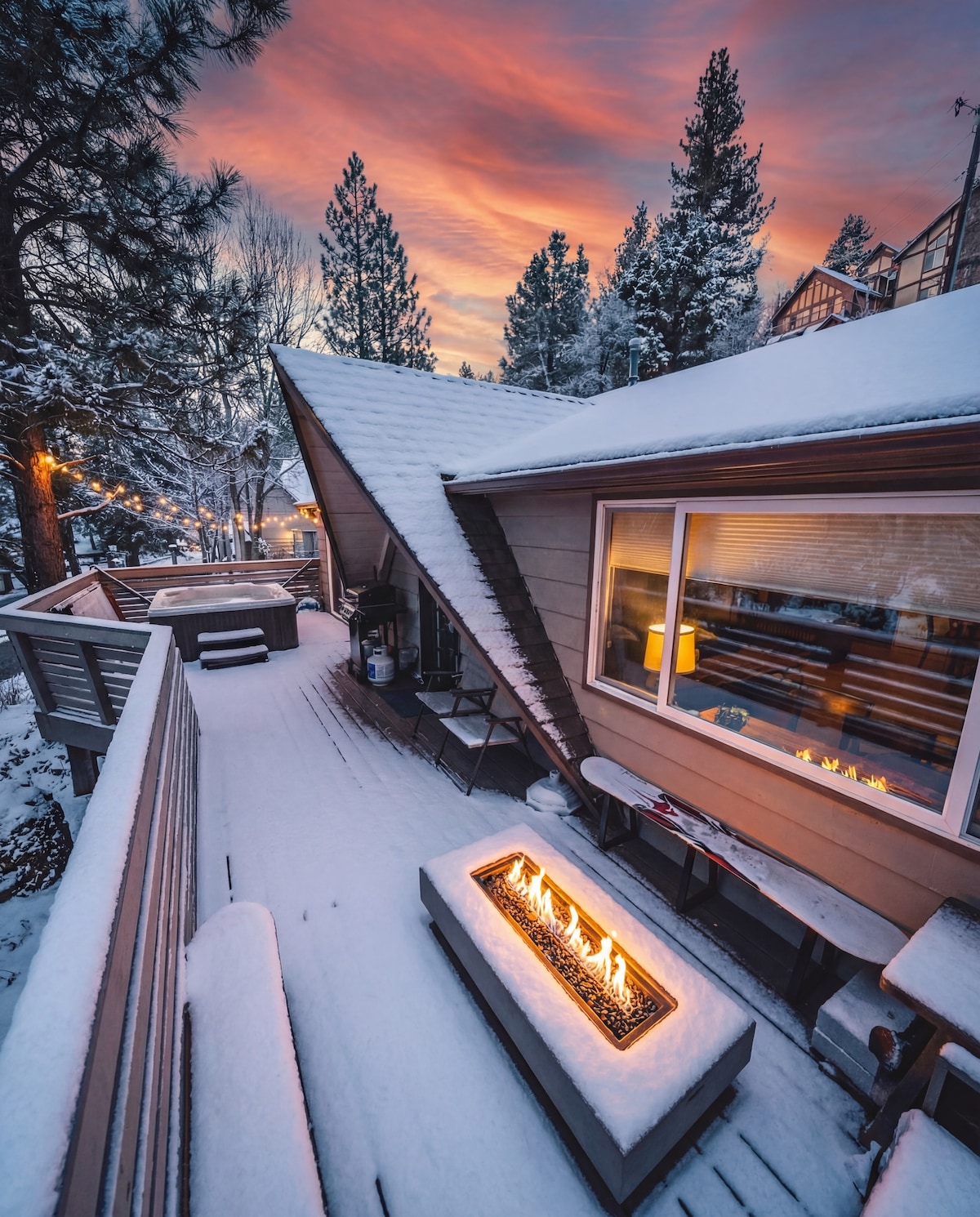 A 字型房屋、滑雪坡景观、水疗、壁炉、露台