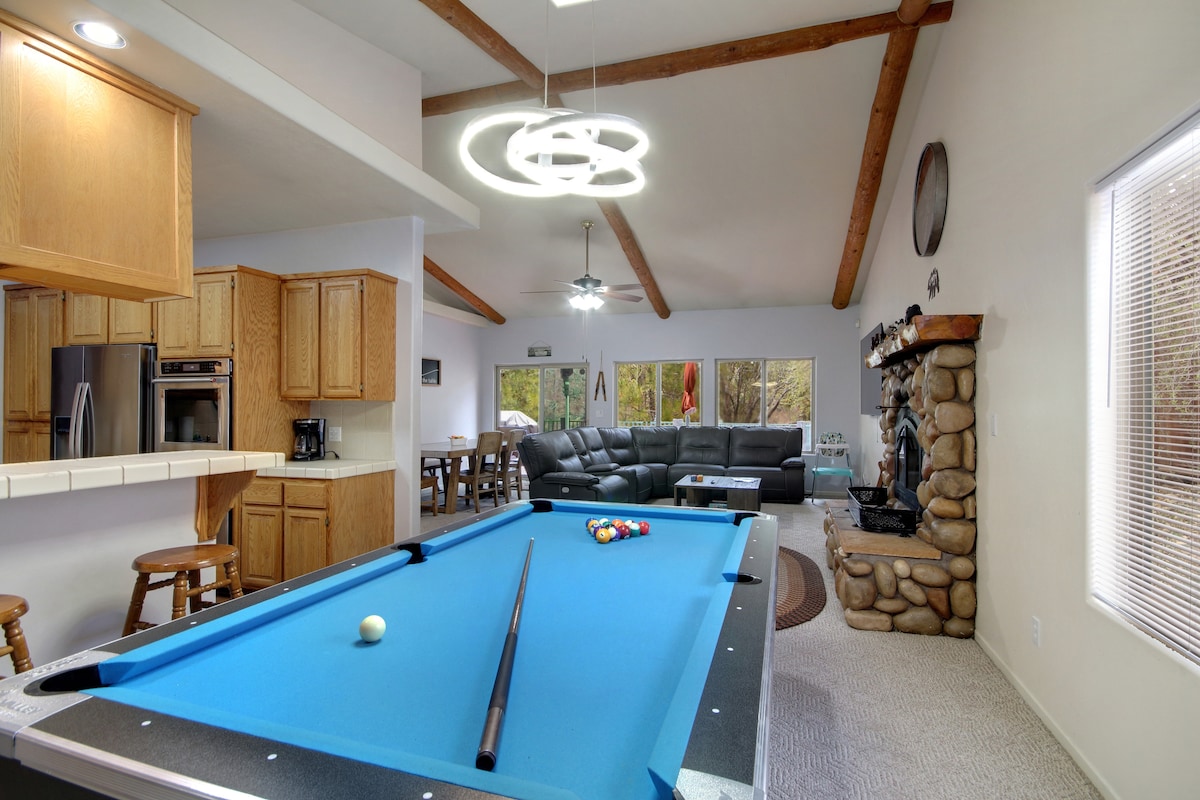Come escape to our newly renovated 3 bed, 2 bath cabin with Central A/C & Heat, & located near the village, lake, alpine slide, ski resorts, & hiking trails. Our home includes many well thought out details & amenities-the perfect getaway for families, couples, or friends. High vaulted wood beam ceilings, wood burning fireplace, board games, vinyl record player & a fully stocked island kitchen. The cozy back deck is nestled under string lights, & home is equipped with a Level2 EV charger.