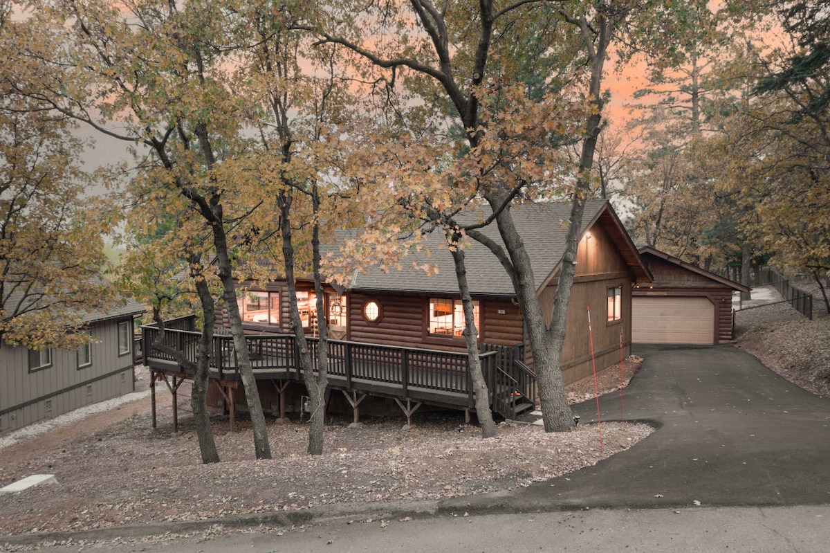 Just 5 mins to Golf ⛳+ Zoo. Quiet hiking trail down the street & backyard Enjoy a dreamy retreat with a spectacular ski slope view❄️in an authentic tongue-and-groove modified-A-frame style log cabin. Sip cocoa on the front deck while enjoying the ski view (or spying on the skiers w/ our binoculars). Watch the sunset behind the trees 🌄and listen to the whispering pines around you. Soak in the private hot tub on the back porch under the starry sky. Relax in the massage chair after a long hike!