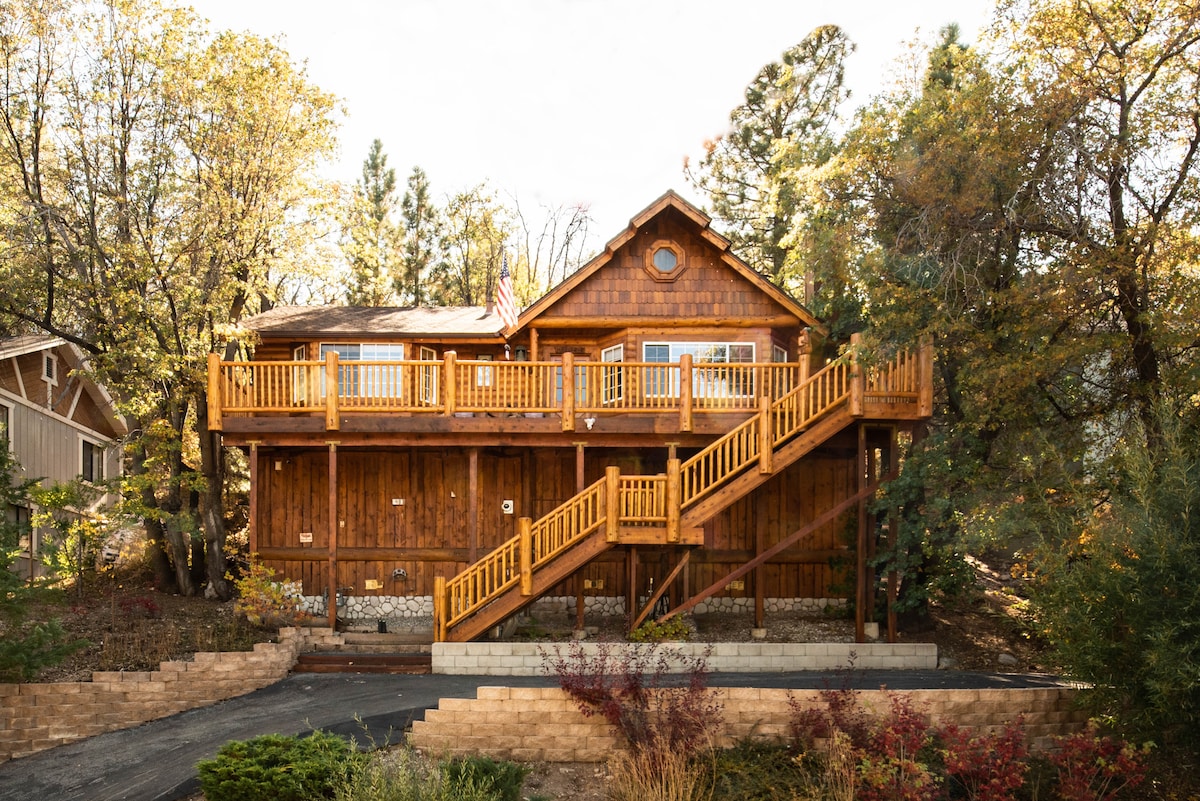 8-10 mins away to Snow Summit downhill mountain biking. KnottyBear Haus - Enjoy a modern rustic retreat in our unique cabin w/ hot tub, firepit, hammock (in summer) in private yard. Surrounded by charming wood-paneled walls, you’ll immerse yourself in a reimagined cabin with modern amenities. Behind a door disguised as a faux bookcase is a secret Marvel x DC Superhero "Chill Cave" w/ big screen TV where superheros hang out in our multi-verse.