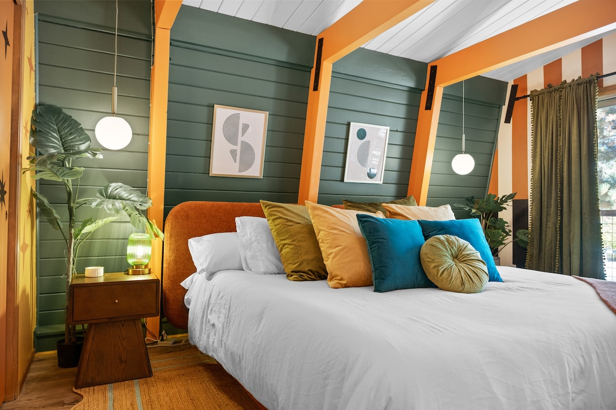 平均评分 4.93 分(满分 5 分),共 302 条评价Juniper Revival:复古加大双人床+按摩浴缸度假屋