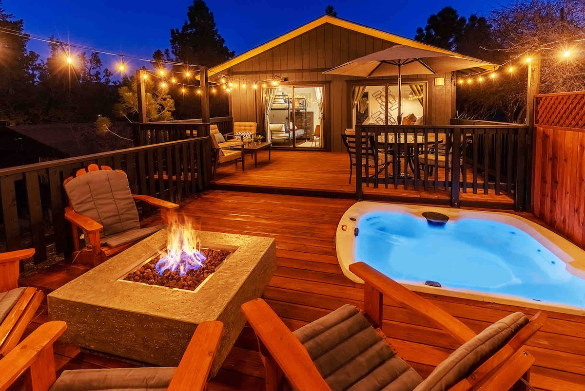 Bear Hugs is an inviting open-concept cabin adorned with Hudson Bay wool blankets, Restoration Hardware, and custom rustic furnishings. A smart and nostalgic retreat, just steps from the lake, a short walk to the village, and minutes drive from the slopes, Bear Hugs has emerged as a beloved gem in Big Bear Lake. Experience the perfect blend of the perks and privacy of a standalone home and spa, combined with the elegance, amenities, and cleanliness of a quaint hotel. BBL License: VRR-2024-2883