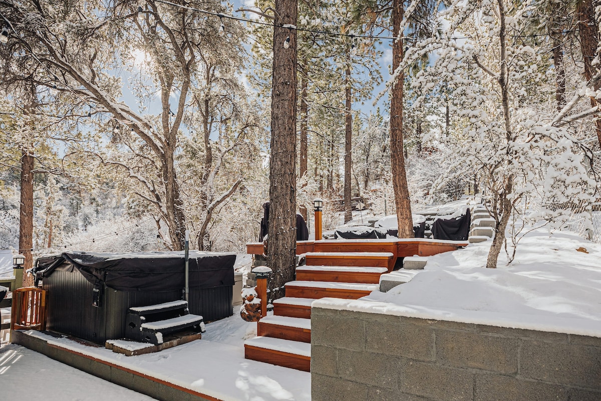 Welcome to Quiet Pine Cabin! Take your Big Bear escape to the next level with this cute Gambrel style cabin, nestled on the edge of the National Forest with direct access to trails and a short drive to the village & lifts. Enjoy the upgraded modern amenities, without losing the cozy cabin charm. The peaceful back deck (equipped with an outdoor living space, firepit, grill, and jacuzzi), looks into the forest, allowing you to unwind and immerse yourself in nature from birdwatching to stargazing.