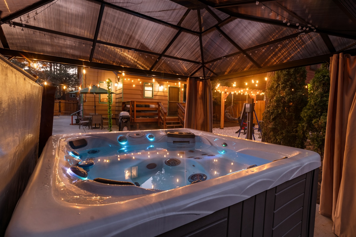Experience the charm of The Wee Bear Cabin! Immerse yourself in this cozy 460 square-foot, Scottish-themed retreat, with a delightful 1bed/1bath layout. Relax and unwind in the privacy of your very own hot tub surrounded by ancient pine trees, allowing your cares to melt away. Indulge in the comfort of the king-sized bed and sink into the plush leather sofa while enjoying your favorite shows on the 55" TV. Just a 9-minute walk/2-minute drive to Big Bear Village and 2 min walk to the lake!!!