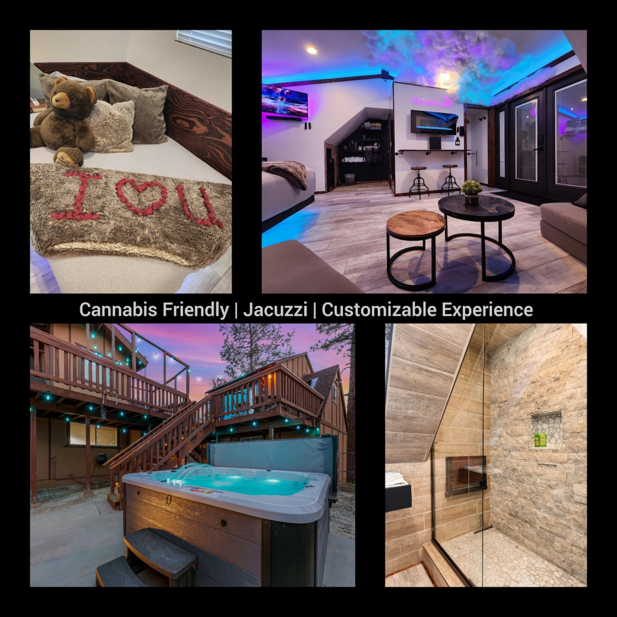 . Walking distance to the Big Bear Mountain Resort . Stunning sunsets from the deck . Pets welcome . Fully Equipped Kitchen w/high end Smeg + Hallman Appliances . A-Frame + Open Concept Lounge/Dining/Kitchen . Large Furnished Main Deck w/ Stunning Lake +Forest Views . Movie Room w/high-resolution projector . BBQ/Grill . Hiking Trails right outside our doorstep . High-speed Wi-Fi + Workspace . Central Heating + Fireplaces . Hot Tub on a covered deck offering privacy + scenic views year-round!