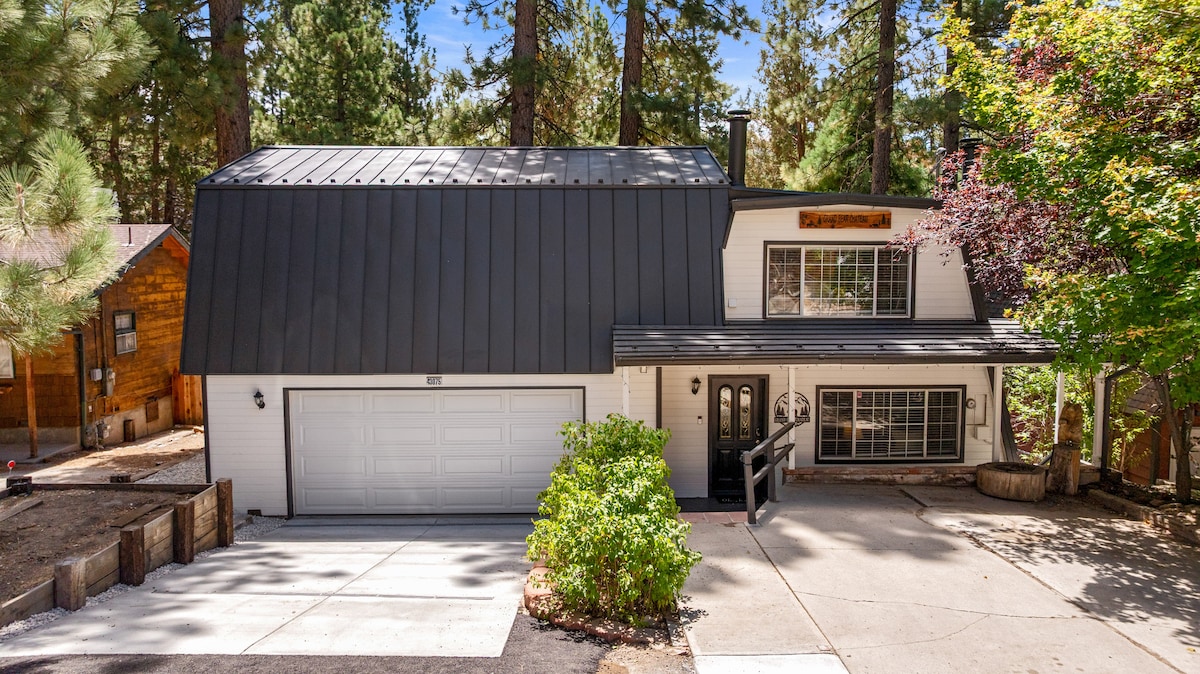 Welcome to Skyfall Lodge, a newly refreshed 3 story A-frame cabin in Big Bear that offers a peaceful mountain retreat with easy access to adventure. If you're looking for a secluded getaway far from the noise and stresses of the city, you've found it here! This quiet cabin surrounded by pines with gorgeous ski slope mountain views is just a few minutes from it all. 4 bedrooms, 3 full baths, large deck, wood burning stove, arcade game room & hot tub, everything you need to relax and unwind!