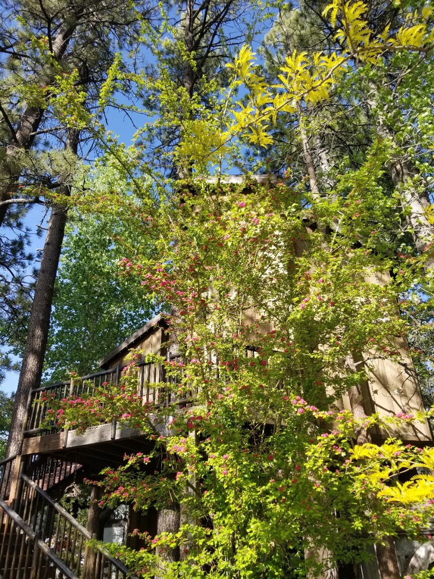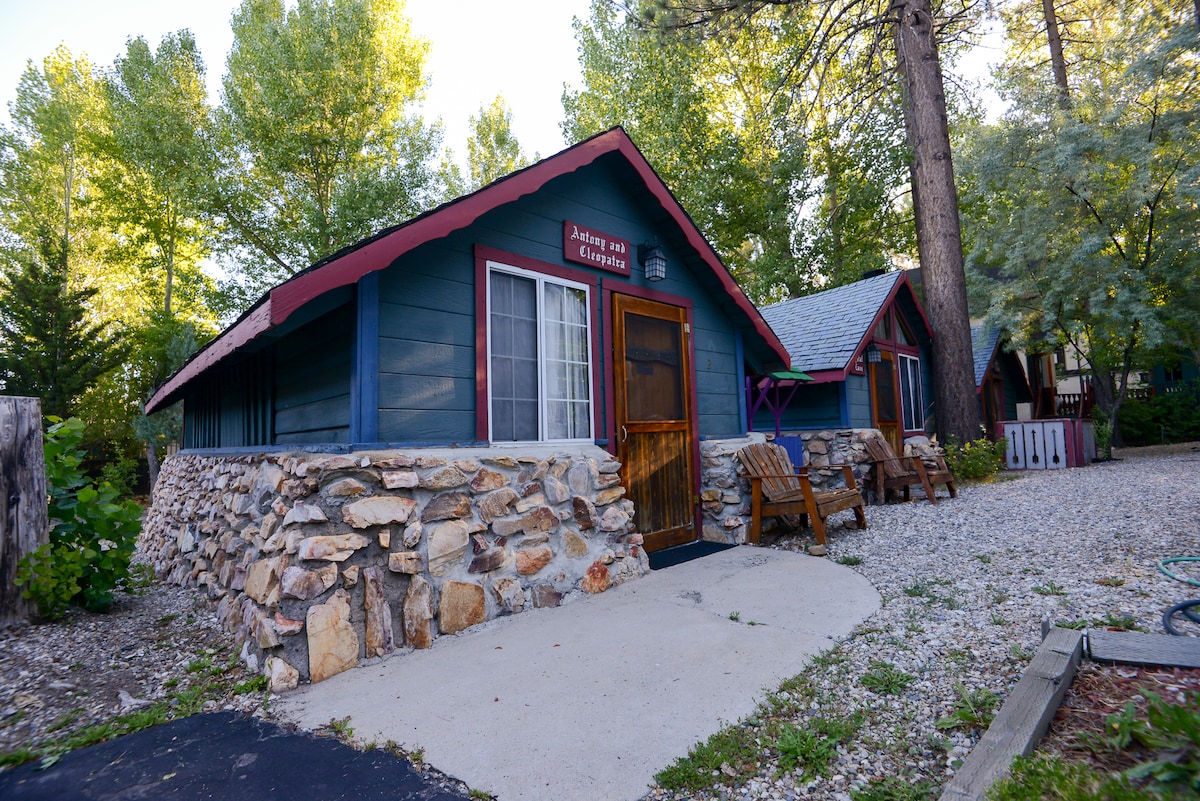 This lake front cabin is nestled among beautiful pine trees located on Big Bear Lake. Our unique, private, studio cabin, is 1/2 a block from the village, with restaurants, bars and unique shopping opportunities. We have a private, sandy beach, boat dock, boat slips, BBQ grills, picnic tables and lounge chair seating. Outdoors, enjoy basketball, ping pong and children's play areas. Relax on your private balcony while enjoying our breath taking sunsets. You might even see our celebrity eagles.
