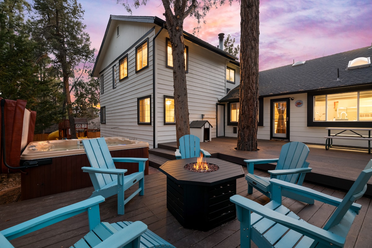 . Stunning sunsets from the deck . Walking distance to the Big Bear Mountain Resort . Pets welcome . Fully Equipped Kitchen w/high end Smeg + Hallman Appliances . Large Furnished Main Deck w/ Stunning Lake +Forest Views . A-Frame + Open Concept Lounge/Dining/Kitchen . Movie Room w/high-resolution projector . BBQ/Grill . Hiking Trails right outside our doorstep . High-speed Wi-Fi + Workspace . Central Heating + 4 Fireplaces . Hot Tub on a covered Deck offering Privacy + Scenic Views Year-Round!