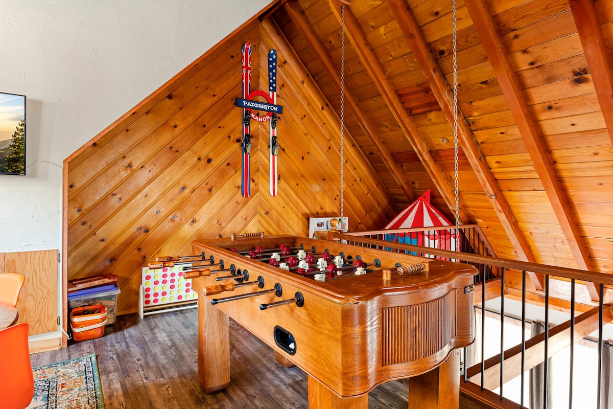 Welcome to The Alpine Oasis, your retreat nestled in the heart of Big Bear, California! This cozy haven invites you to unwind in style, boasting a barrel sauna for ultimate relaxation. Immerse yourself in the rejuvenating bubbles of the jacuzzi, or gather in the game room and enjoy the arcade console with 3000+ classic arcade games! Embrace the serene mountain vibes as you escape to this charming chalet. This is the perfect getaway for those seeking a blend of adventure and tranquility.