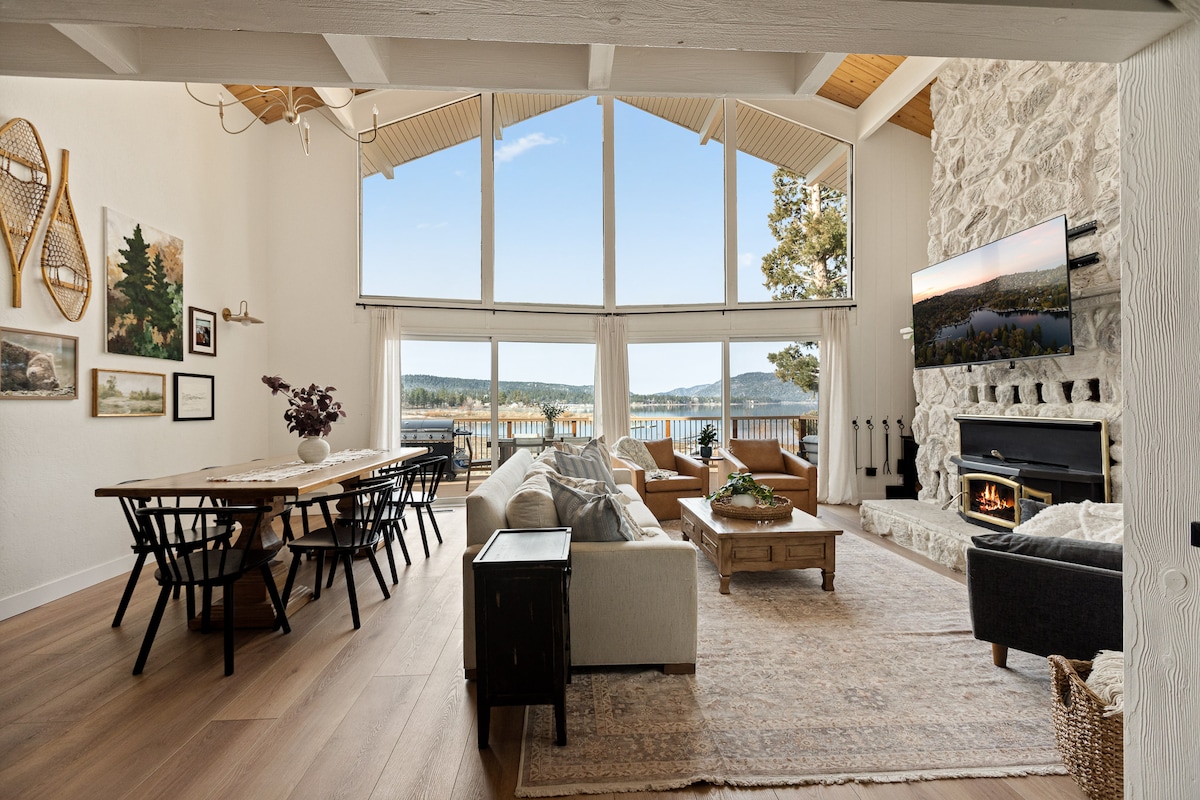 Experience the ultimate lakefront living in this stunning log chalet in Big Bear Lake. Boasting a total of 4 bedrooms and 3 bathrooms, including 3 bedrooms and 2 bathrooms in the main house and an additional guest house with 1 bedroom and 1 bathroom this chalet provides ample space for up to 10 guests. Breathtaking views, new led hot tub, private dock, gas fireplace, fun video game table, washer and dryer.
