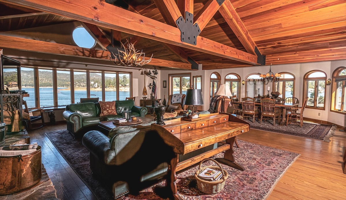 Bear Hugs is an inviting open-concept cabin adorned with Hudson Bay wool blankets, Restoration Hardware, and custom rustic furnishings. A smart and nostalgic retreat, just steps from the lake, a short walk to the village, and minutes drive from the slopes, Bear Hugs has emerged as a beloved gem in Big Bear Lake. Experience the perfect blend of the perks and privacy of a standalone home and spa, combined with the elegance, amenities, and cleanliness of a quaint hotel. BBL License: VRR-2024-2883