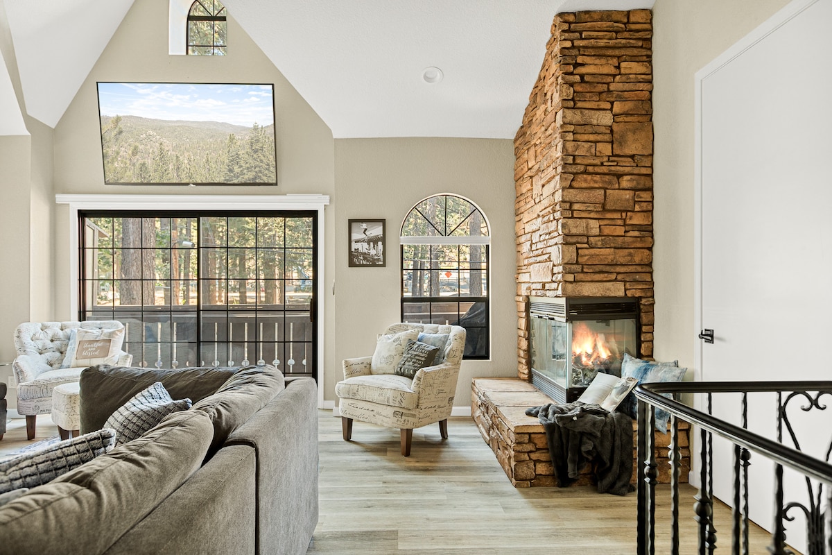 Couples, Families & Mountain Peace Seekers only, please. Perched on stilts and boasting unrivaled mountain and valley views, sits this incomparable A-Frame. Since 1964, this gorgeous example of Mid-Century A-Frame architecture has graced the Arrowbear Lake Valley. In 2022, it completed a full restoration and has since become the standard by which all other A-Frames are measured. Brilliantly designed by SoCalSTR® | IG: @socalstr "Top 1%" local market performer according to AirDNA