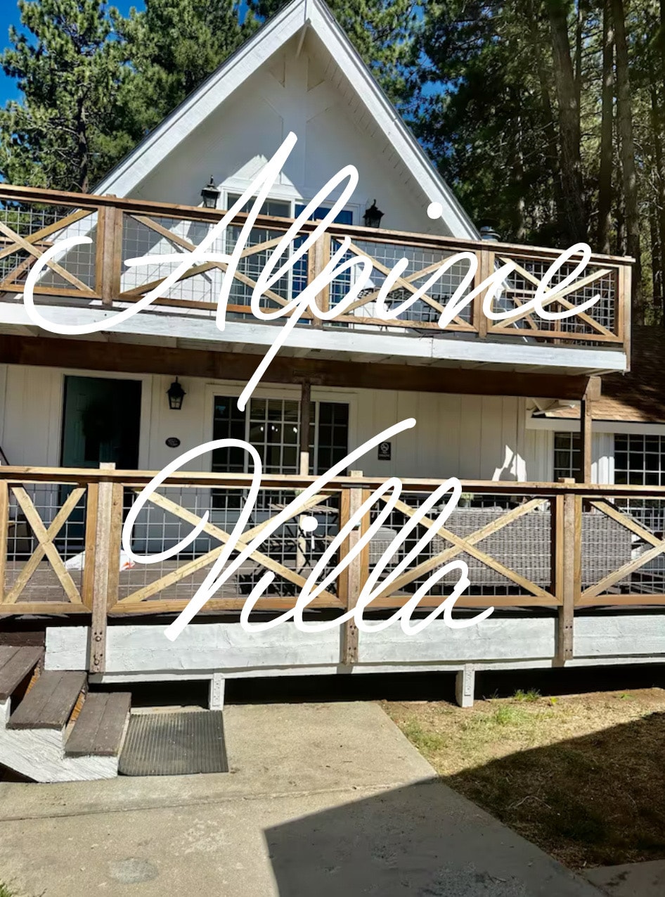 Time to book the Holidays at Alpine Villa! We are a Dog Friendly French inspired home,with flat driveway (no slipping dn hilly driveways)we are a newly renovated 3 bedroom, 2 bathroom home right in the heart of Big Bear Lake--walking distance to the Main Village and Lake, Snow Summit is 1.3 miles, a short drive to the zoo, and golf course. Enjoy a huge open living room w/ 75” tv and curl up by one of the two the fireplaces in this warm, woodsy home or relax outside on one of the 2 large deck