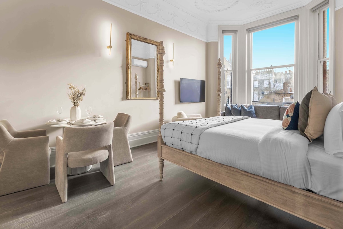 Enjoy historic charm and modern elegance in this newly renovated studio apartment, housed in a building with 250 years of history. Sound proofing ensures a calm stay, while your own full kitchen and private luxury bathroom allow you to unwind and relax. Our location is unbeatable. Tucked away on a quiet street by Leicester Square, you're minutes from top areas like The West End and Soho, with excellent transport links for further trips. Make us your base and spend more time enjoying London.