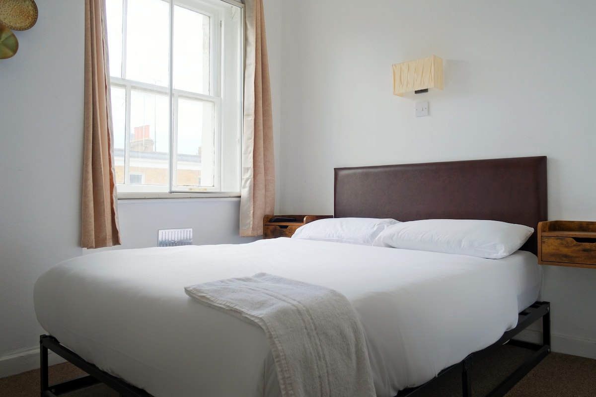 A spacious double ensuite room in our Victorian townhouse in Camden Town, with direct access to a small patio at the back of the house. Facing the garden and set away from the road, it has a calmer, quieter feel while still being close to Camden Market, transport links, and central London. Guests love it for its comfort, easy self check-in, and the bonus of outdoor space.