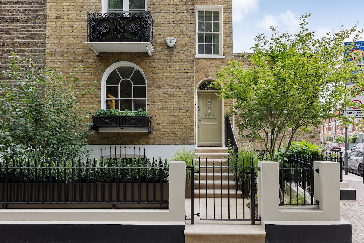 Stay in a stunning Grade II-listed Georgian home with original sash windows, fireplaces, and French doors. The entire top floor is a luxurious master suite with a walk-in rainfall shower and roll-top bath—perfect for unwinding after a day in London. Located in the heart of Parsons Green, just steps from local favorites like Hallies, Arro Coffee, and the iconic “Sloaney Pony” pub. Enjoy a charming village feel with easy access to central London—only a 6-minute walk to the District Line.