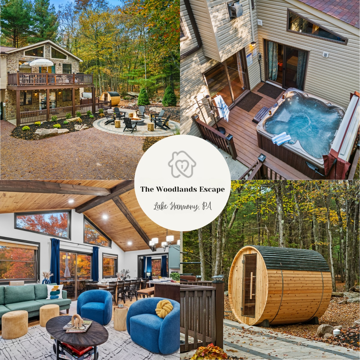 平均评分 4.99 分(满分 5 分),共 67 条评价位于迷人森林中的 Pocono Aframe,配备热水浴缸