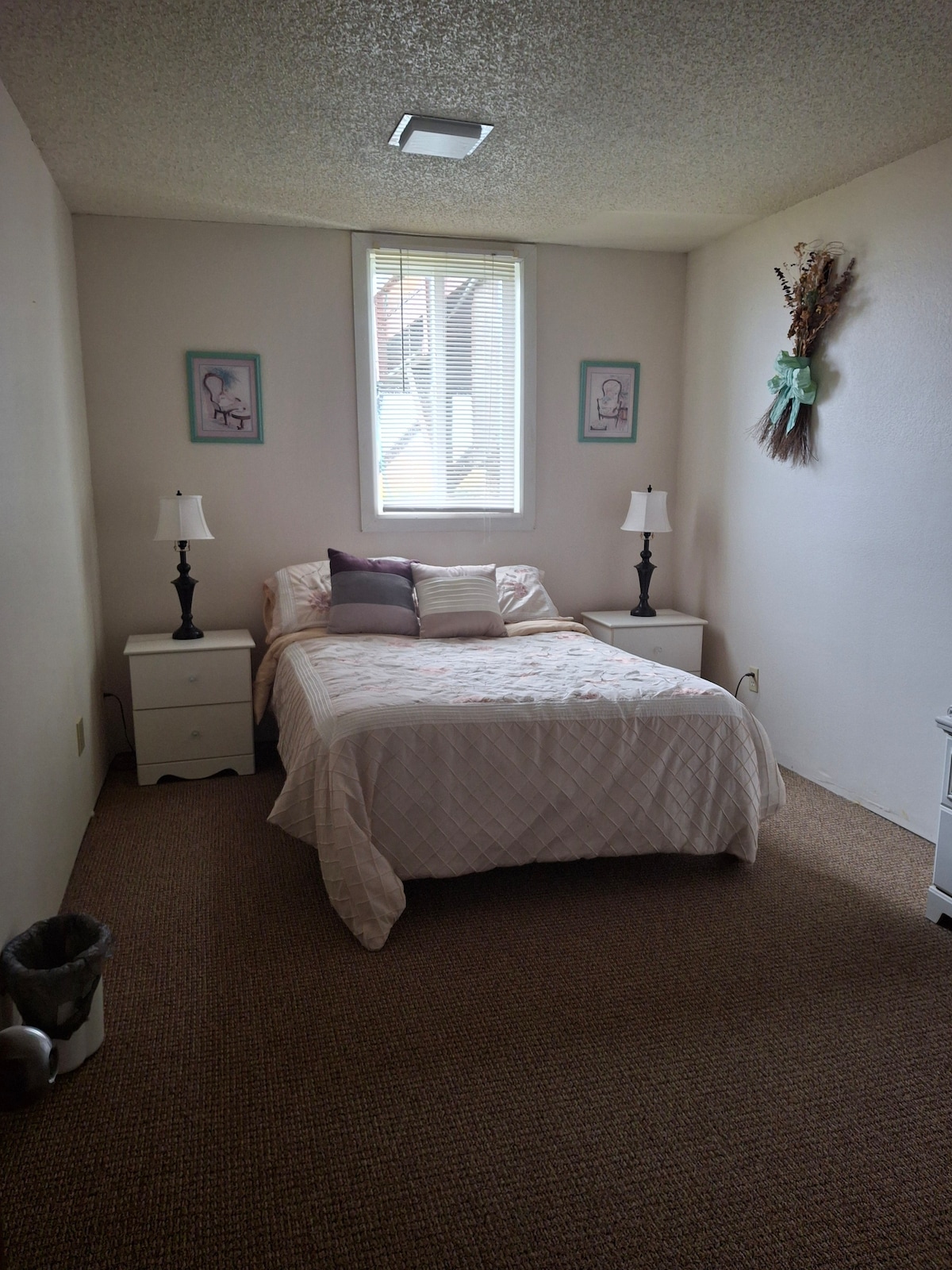 Spacious two bedroom, 1 bath basement apartment with full kitchen (stove, fridge/freezer, microwave, toaster, utensils, silverware, etc. The living room has a nice free-standing gas fireplace, which makes the apartment very cozy. There is also a TV with an Amazon Firestick, allowing guests access to Netflix, Hulu, YouTube, etc. Each bedroom has a comfortable queen sized bed, dresser, and electric fireplace for added comfort and ambiance.
