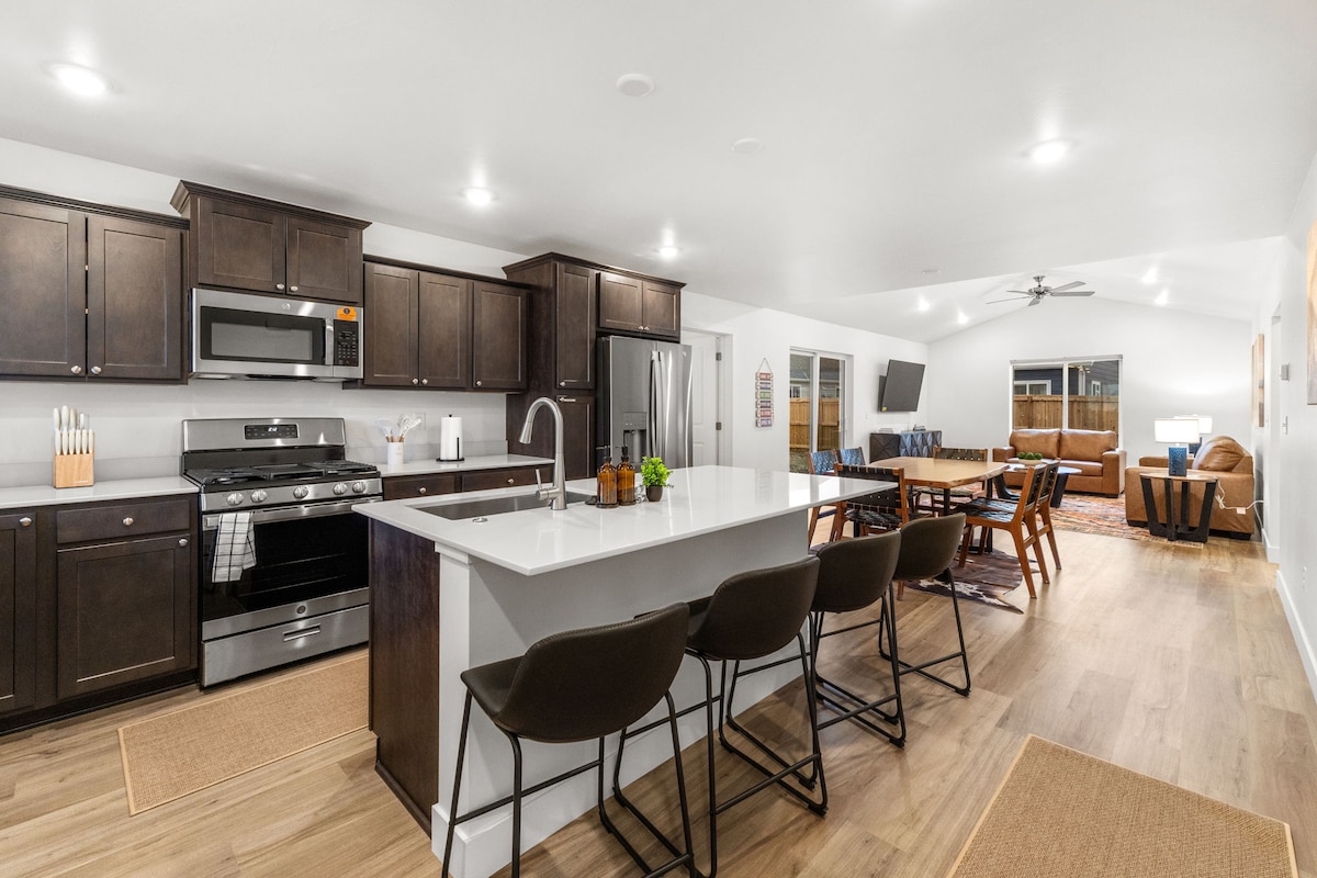 Right outside of Bozeman nestled at the foot of the mountains, welcomes you, your family, and furry friends to enjoy a getaway to remember! The vacation rental sits on a young fruit orchard where you can pick fruit when the season is right. Adventure out and visit iconic Montana attractions like Yellowstone National Park, Bridger Bowl Ski Area, and Big Sky Resort! Return to the comfort of home and warm up by the fire or grab a blanket and stargaze on the deck.