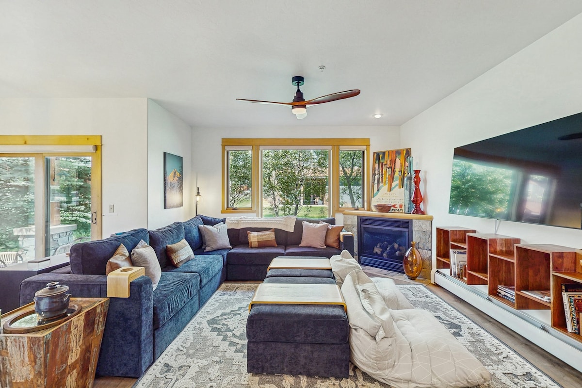 Brand new construction - in 2021, with bright and cheerful interiors offers a spacious single level townhouse close to downtown with seamless access to skiing and fishing etc also. Enjoy a stylish and comfortable experience at this centrally located home. This is a 3 bedroom, 2 bathroom home offering great sunsets to the West, right on an immaculately maintained trail system through 50+ acres of green space and park for morning runs or evening strolls. Ideal for families or couples + friends.