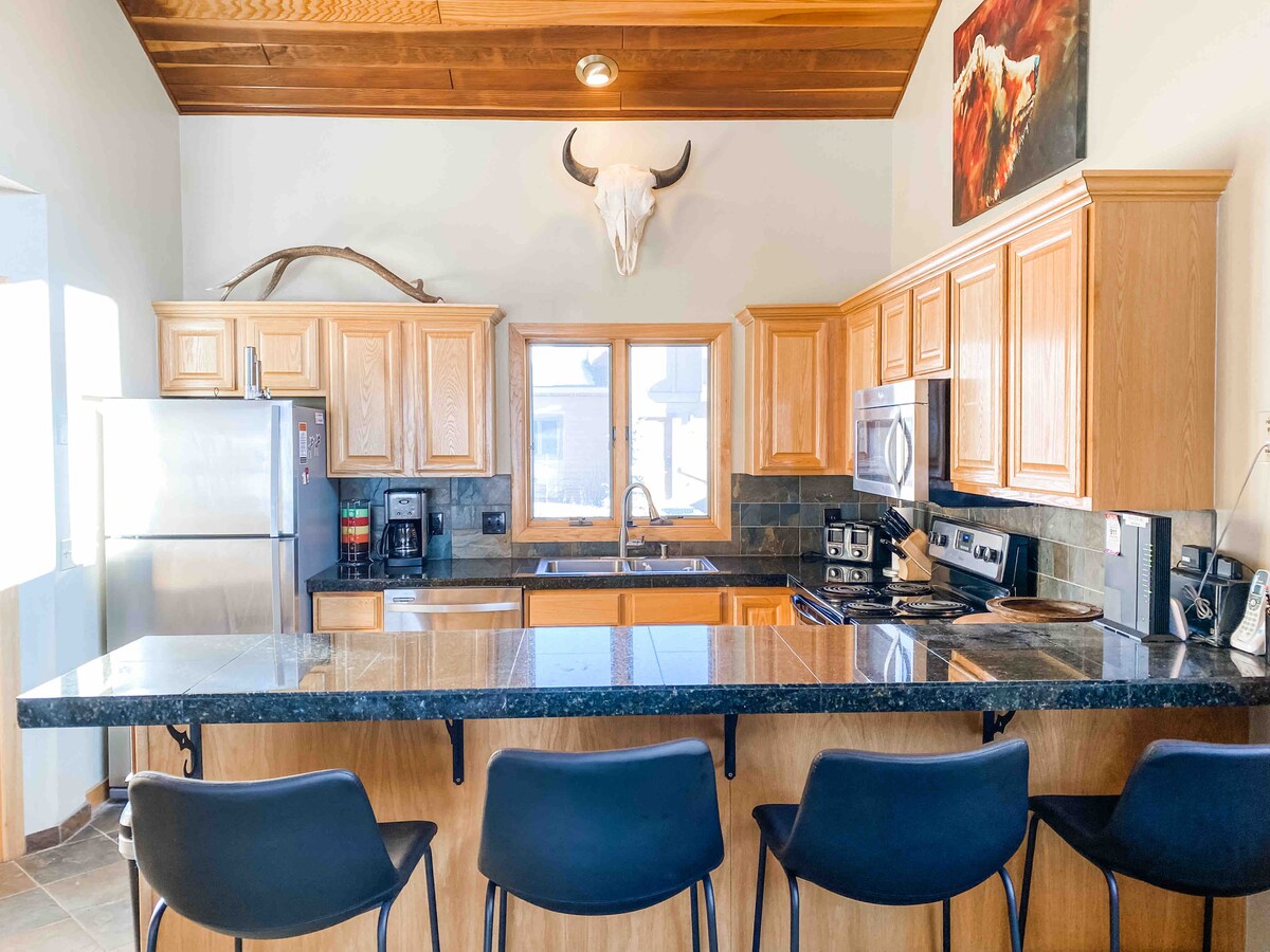 Enjoy a cozy, comfortable, mountain getaway at this centrally located unit just minutes from Big Sky Resort. This condo’s convenient location and easy access to the slopes make it the ideal outpost for all of your seasonal Big Sky adventures! This unit features 2 bedrooms each with queen beds, 2 bathrooms and a sleeper sofa in the living room. There is a designated workspace in the master with high speed internet. The kitchen is fully equipped with everything you need for a cozy night in.