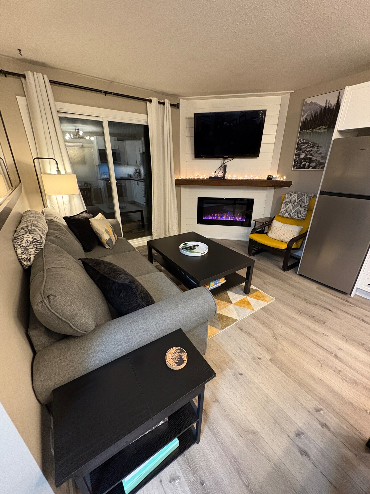 Luxury condo 2br+2ba in cetral location on Big White: Your perfect getaway home! Our apartment centrally located within 3 minute walk to the gondola, right on a Happy Valley green ski run - true ski in and ski out. Easy run for even little kids, no more climbing over snow banks with your skis! Only 3 minute easy walk to skate rink, fire pit and the day lodge (excellent spot to watch the fireworks every Saturday). Our home is perfect for couples, business travellers, families, and groups!