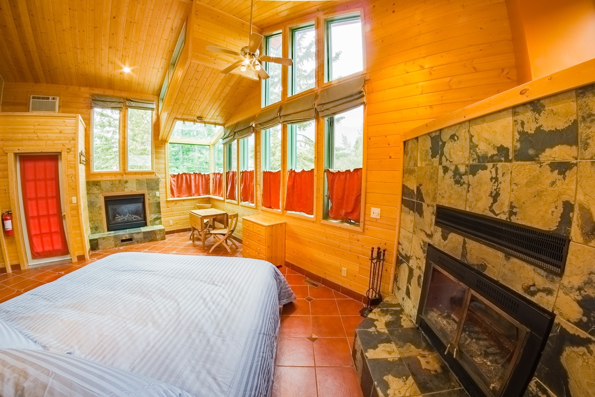 Our Panoramic Suite is a bright and airy space with a whopping 17 windows facing the Rundle mountain range with spectacular views. The suite has a private entrance, bedroom with gas fireplace, ensuite bathroom, wet bar, and patio with sitting area. We are located on a cul-de-sac in a quiet neighbourhood with walking trails along the Bow River leading to downtown Canmore in a delightful 15-minute stroll. For 2025, there is no cleaning fee!