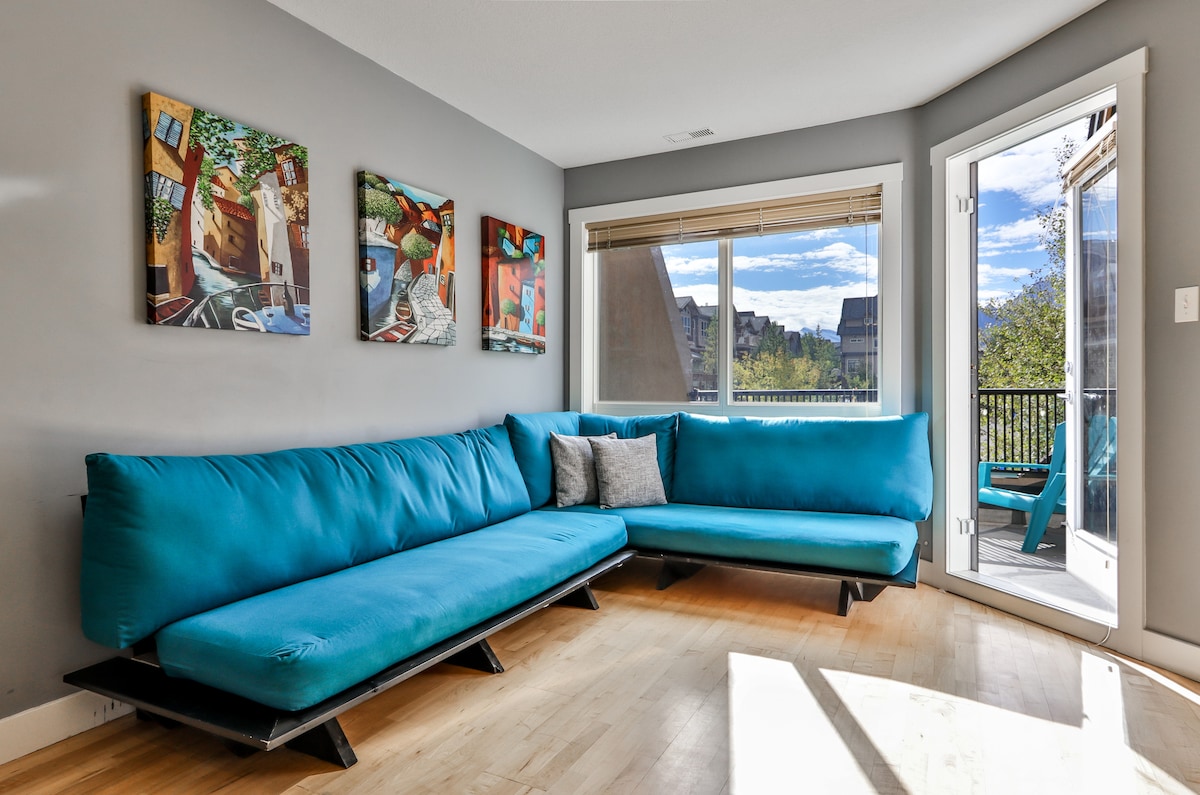 Blue Moose is a newly updated and furnished, spacious luxury one-bedroom condominium with king -sized bed and queen sofa bed. New for 2025: major bathroom and kitchen upgrades. PERFECT LOCATION This modern mountain retreat is situated next to a pristine mountain creek. Follow a creekside nature trail and within minutes you are in downtown Canmore with trendy shops, cafes, food trucks, and both casual and upscale dining.